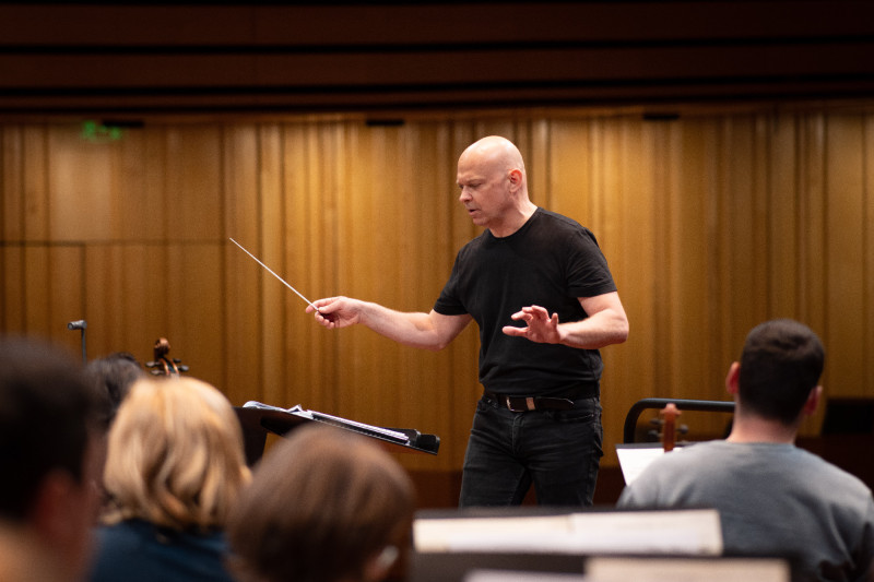 Kesselyák Gergely próbán a karmesteri pulpituson
