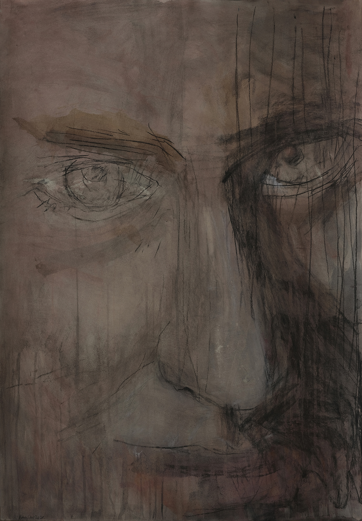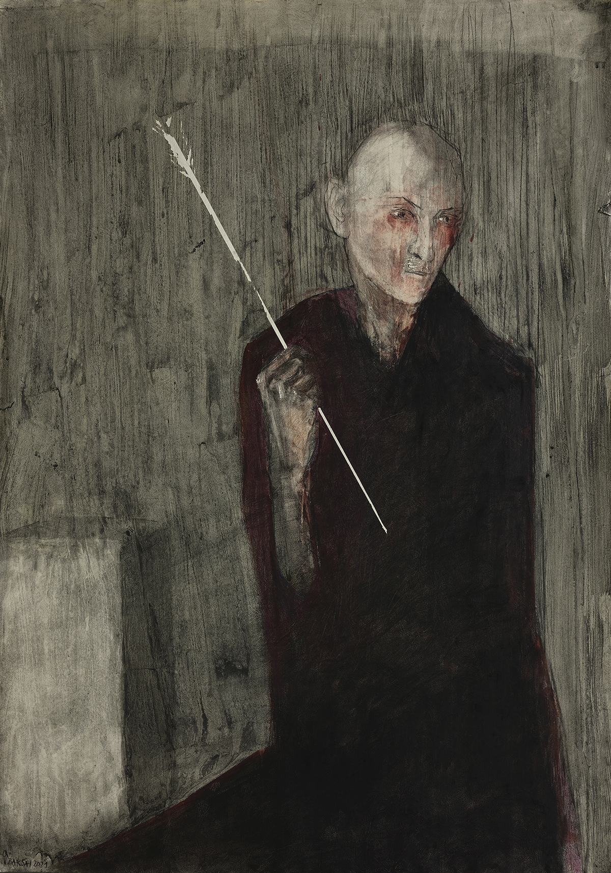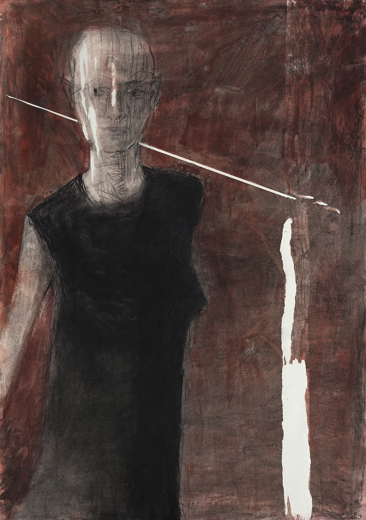 Ha aktualizálnánk a képek összhatását: a magárahagyottság egyben a szétesettség állapota, az a polarizált létállapot, amelynek lényege a szekularizálódó dezorientáltság. A szent mártírok magánya a hitért szenvedők választott és dacos akarata. Felfokozott létérzékelés a lefokozott létérzékelhetetlenséggel szemben. Nem értékvesztés, hanem a hitben megtartott értékért való önfeláldozás. A csend és a magány érzete teljesedik ki az utóbbi évek szénrajzaiban, azt sugallva, hogy a magába zártság erőgyűjtés, csak a hit visszanyerésével léphetünk ki belőle. Olyan indirekt jelentéseket hordoznak a képek, amelyeket csak a magányt, s a kapcsolat által kettős magánnyá nemesedő állapotot megélt ember érezhet, a magányból való kilépés ígéretével, hiszen a másik szenvedésének átélése már kilendít a bezárkózásból. Az egyik képnek Nap a címe, melyen a melankolikus arcú figurának csak a feje búbja éri a horizontot. Arcán a csorgások bánat és tápláló víz a kihajtáshoz, a napfelkeltéhez. Mintha alkimista kódex átrajzolt allegóriája lenne: a lélek tükörképeiként a természeti elemeket használja, sok esetben összeolvadó vagy átáramló képi metaforaként a szóban kimondhatatlan jelentéseket érintve.