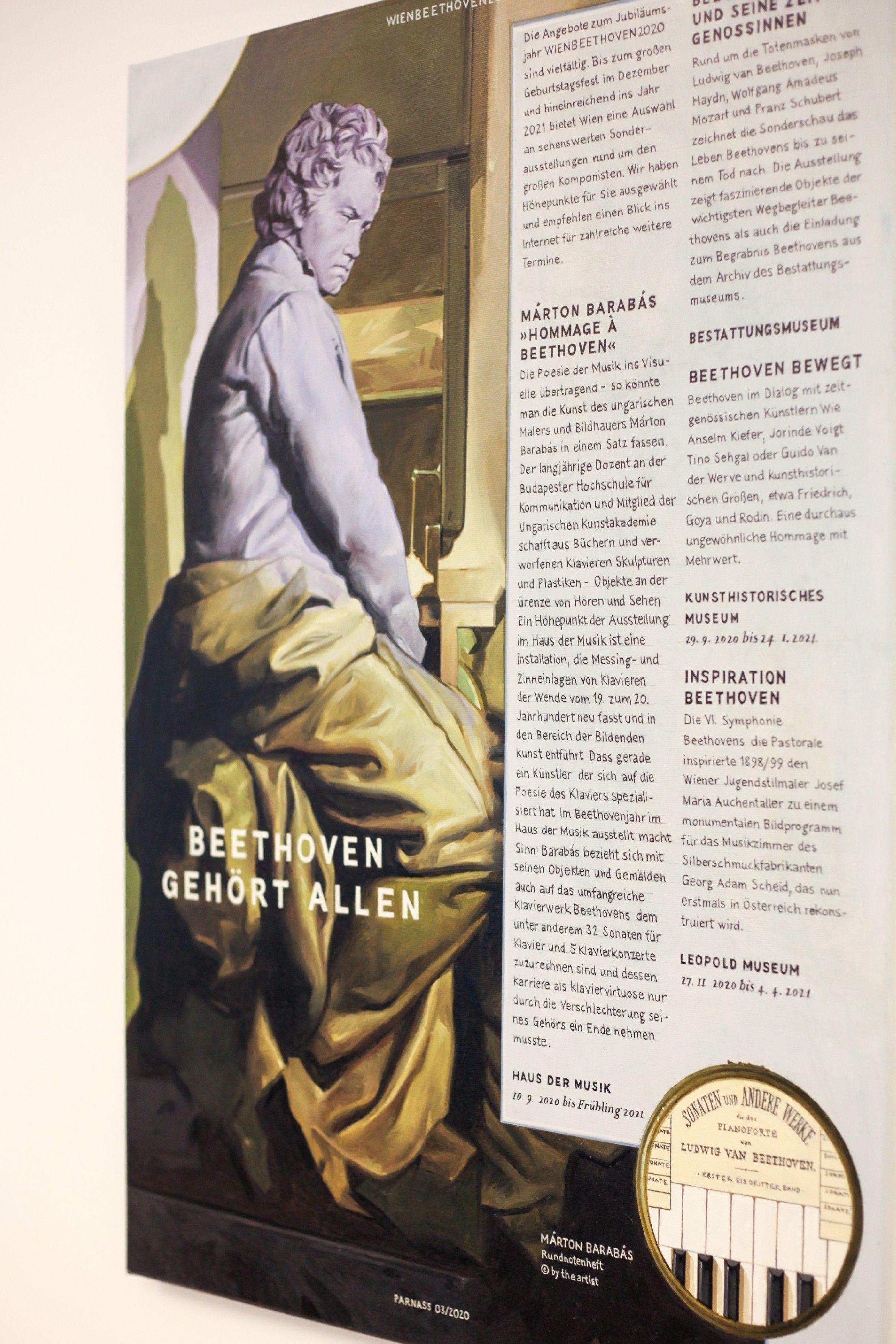 Vajon ilyesmi járhatott-e művészünk fejében, amikor a mű – reprodukció folyamatot újabb elemmel toldotta meg. Harapjon a kígyó a farkába! Igen! Barabás úgy tiltakozik a kommersz ellen, úgy üzen hadat a művészetet aprópénzre váltó, a tömegtermékekre koncentráló, üzleti szempontok szerint átrendeződő világnak, hogy idézőjelek közé téve megismétli, sőt a méreteket megnövelve piedesztálra emeli azt. Sőt továbbmegy. Egy kiállításon orrunkba üt vele.