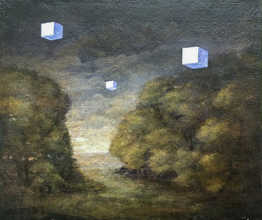 Az elmúlt években újra megjelenik a szín, és felbukkan egy addig csak háttérként szolgáló elem, a táj. Tenyérnyi és hatalmas klasszikus tájképek készülnek, melyek persze nem nélkülözik a sajátos, Szurcsik által már bejáratott védjegyszerű épületeket, arcromokat, vagy épp valami különös jelenséget (ufó). A tájak a barokk és a klasszicista tájképfestészet ismérvei alapján a maguk romantikusságában, elképzelt erdők, dombok, délutáni, esti fényekbe burkolózva jelennek meg. Az idilli – talán Claude Lorrain vagy az idősebb Markó Károly festészetének hatását nyomaiban magán viselő – tájfestészet mutatja, Szurcsik egy új világot, a posztromantikus, ugyanakkor posztmodern érzést elemzi.