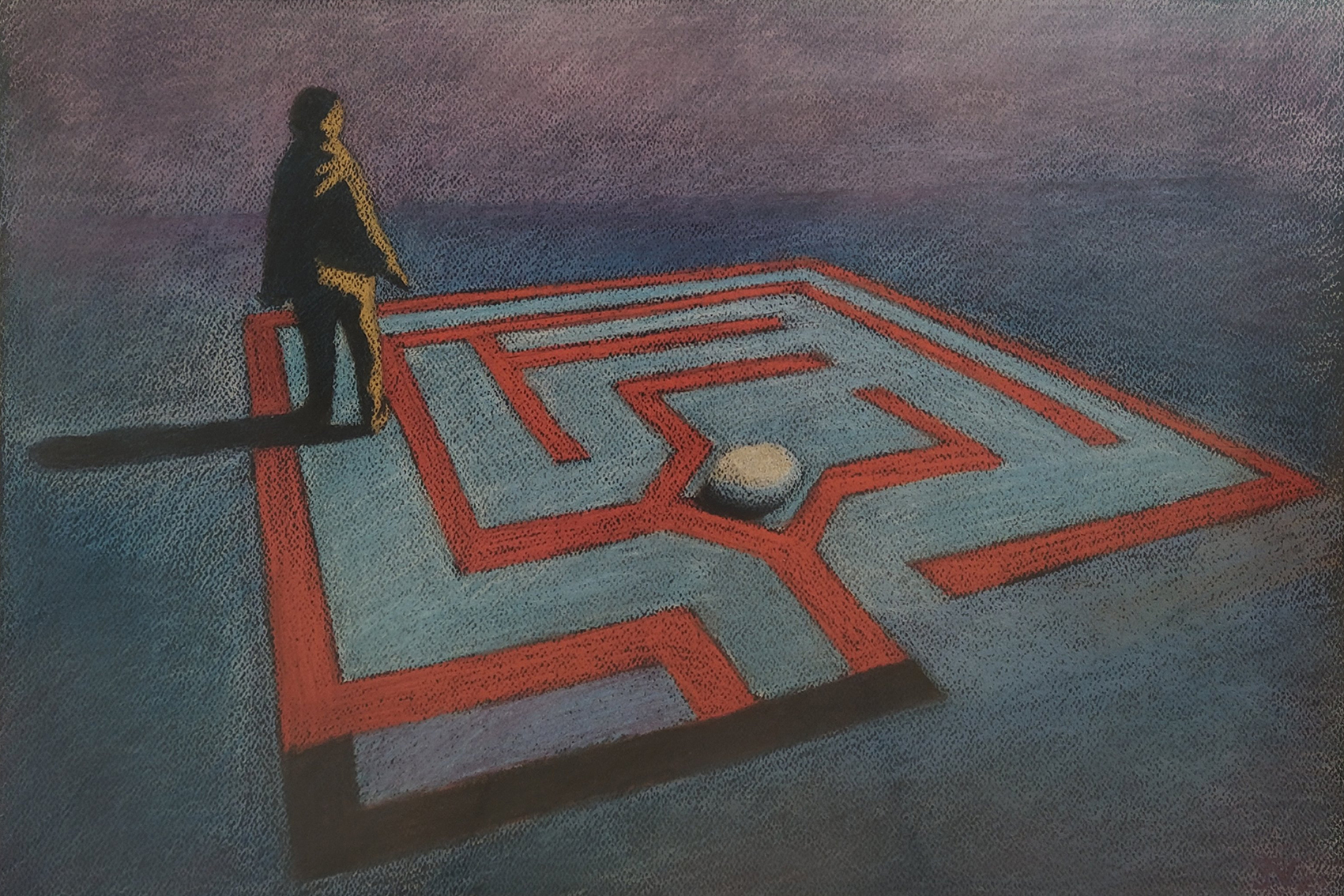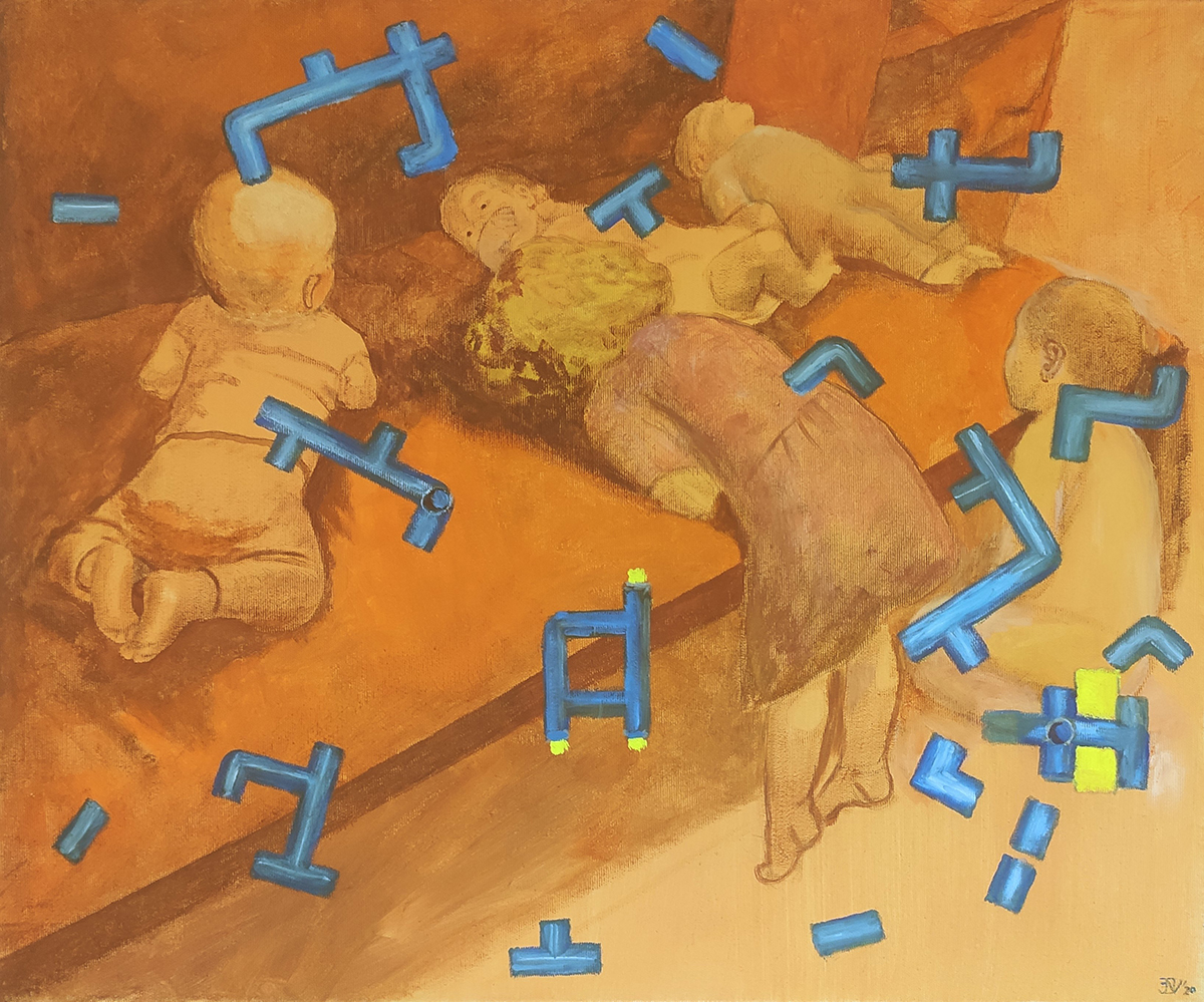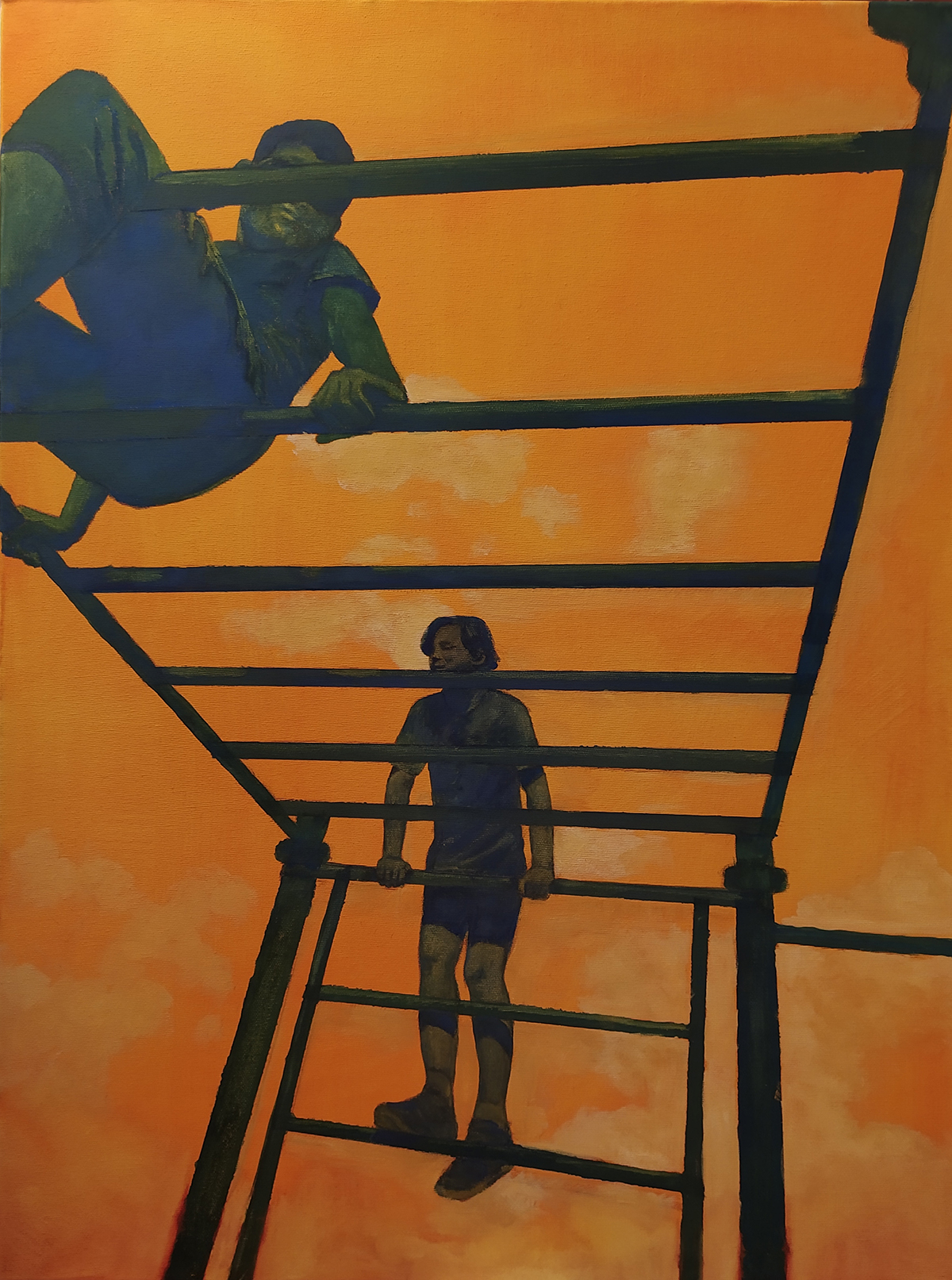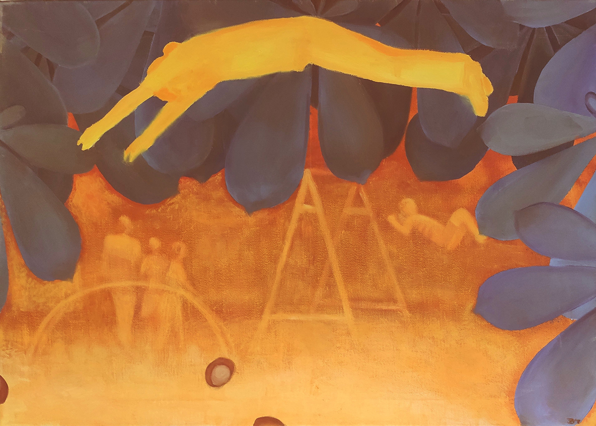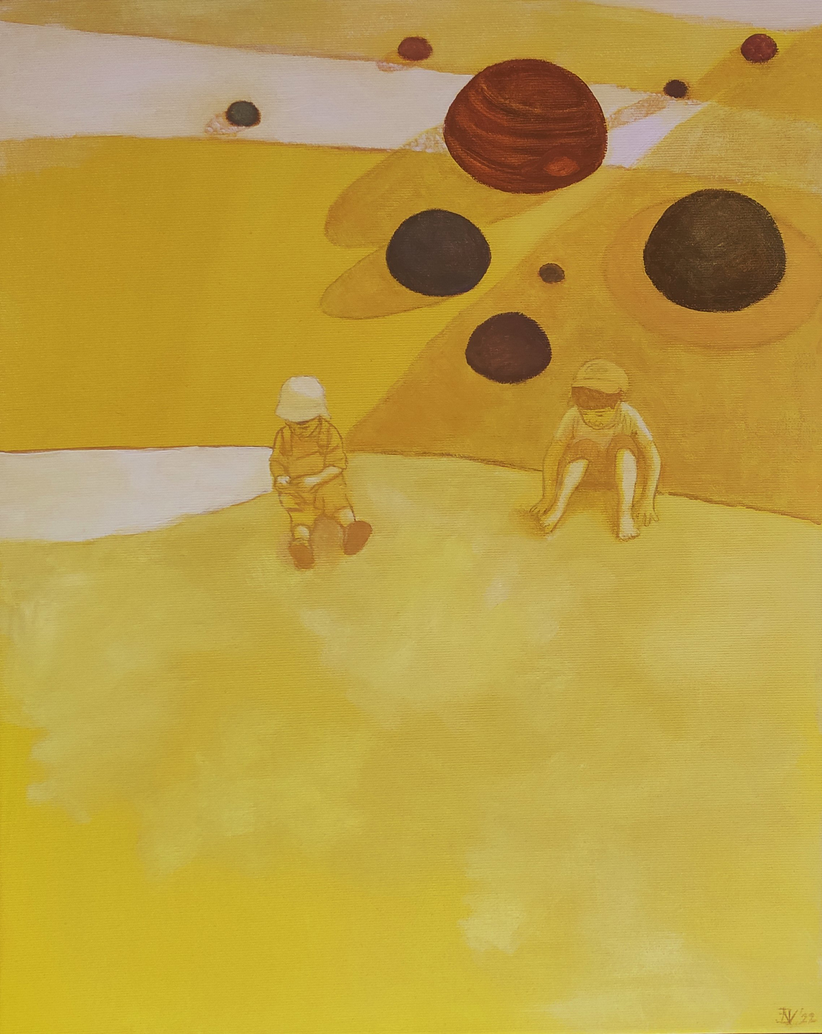 A művekben megjelenő különleges nézőpontok gyakran újszerű perspektívákat teremtenek, amelyek segítségével akár más dimenziókba is bepillanthatunk. Ha elfogadjuk a képek egyedi, mágikus szabályait, akár ki-be ugrálhatunk a múlt és a jövő között, ahogyan a Jövőbemászók (2021), illetve a Nosztalgikus ugrás a gyermekkorba (2020) című festményeken látjuk. Akár bolygóközi utazást is tehetünk a Játsszunk Naprendszert (2021) című képben elmerülve. A játszótéri mászóka izgalmas térélménye új dimenziókat nyit meg, szimbolikusan a mászó gyermekek életében is. A hétköznapok jelenetei mindig magukban hordozzák a valóságon túli eszményképet, amely betekintést enged a mögöttes tartalmakba, a titokba. A labirintusban való eltévelyedés, illetve az abból való kijutás lehetősége mindig az újrakezdés és az újjászületés szimbólumává válik, különösen, ahogy egy labdáját kereső fiatal lélek útját látjuk a Kisfiú labirintussal (2021) című munkában.