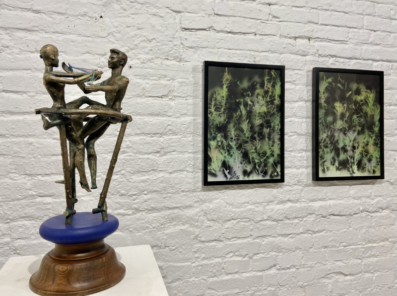 Elekes Károly Gyűrű című bronzszobra már egy párost mutat, mely az emberi kapcsolatok fontosságáról és törékenységéről üzen. Az alakok a játék gesztusában kapcsolódnak egymáshoz, ebben a cselekvésben mindkét fél képes feloldódni, és lelkük benső világába, illetve közös identitásukba menekülni. A színes fonalak törékenysége szembekerül a bronz erős örökérvényűségével, mely kettősség jól tükrözi a test és a lélek gyengeségét, mégis szilárdságát. Cservenka Edit színgazdag, főként hússzínekkel és lilás tónusokkal festett, egymásba áttűnő, emberszerű, amorf testjeit az erotika és a sejtelmesség jellemzi. A figurativitásból a nonfigurativitás felé hajló, olajjal és akrillal készült festményei az emberi kapcsolatokat, az intimitásban megélt identitás kérdéseit helyezik fókuszba.