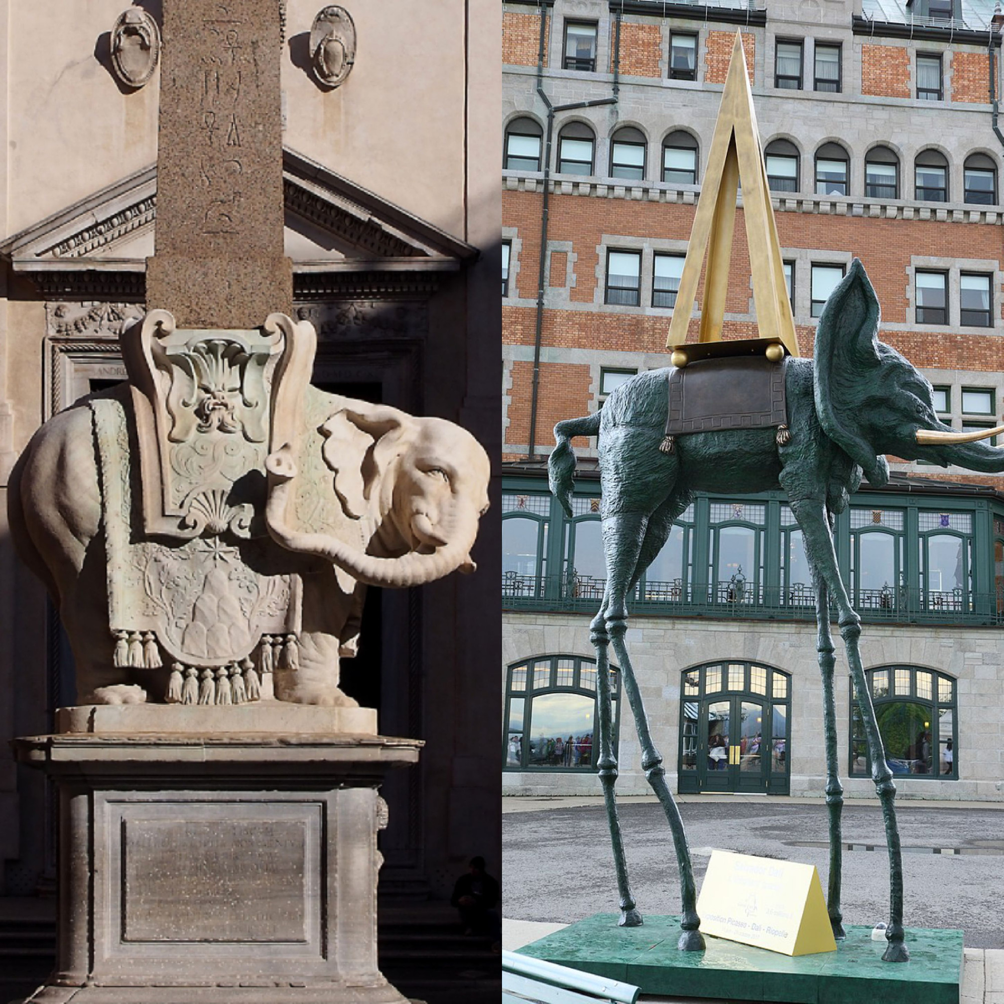 Klimt szecessziós képénél jóval korábban készült Lorenzo Bernini monumentális márványszobra: egy elefánt, amely valódi egyiptomi obeliszket hordoz a hátán, a szoborhoz tartozó latin felirat pedig arra utal, hogy ezt a súlyt – mármint a hieroglifákkal tarkított obeliszk súlyát – csak a legnagyobb szellemek bírhatják el. Az obeliszk és általában az egyiptomi misztériumok mélyen átitatták a későbbi szabadkőművesek titkos tanait is. Ők úgy képzelték: a piramisok templomok voltak, és rejtett alagutak húzódtak meg a piramisok alatt. Az amerikai építészet egyik csúcsa, a hatalmas márványobeliszk kétségkívül szabadkőműves jelkép. De Bernini kompozíciójában érdekes maga az elefánt is. A távolkeleti kultúrákban az elefánt az Erő, a Gazdagság és a Szerencse szimbóluma. Salvador Dalíra nagy hatással voltak ezek az elefántok, saját szürrealista képein Bernini obeliszk és szerencsehozó elefántjai póklábúak, mivel a pók a szerencse szimbóluma a katalán folklórban is.