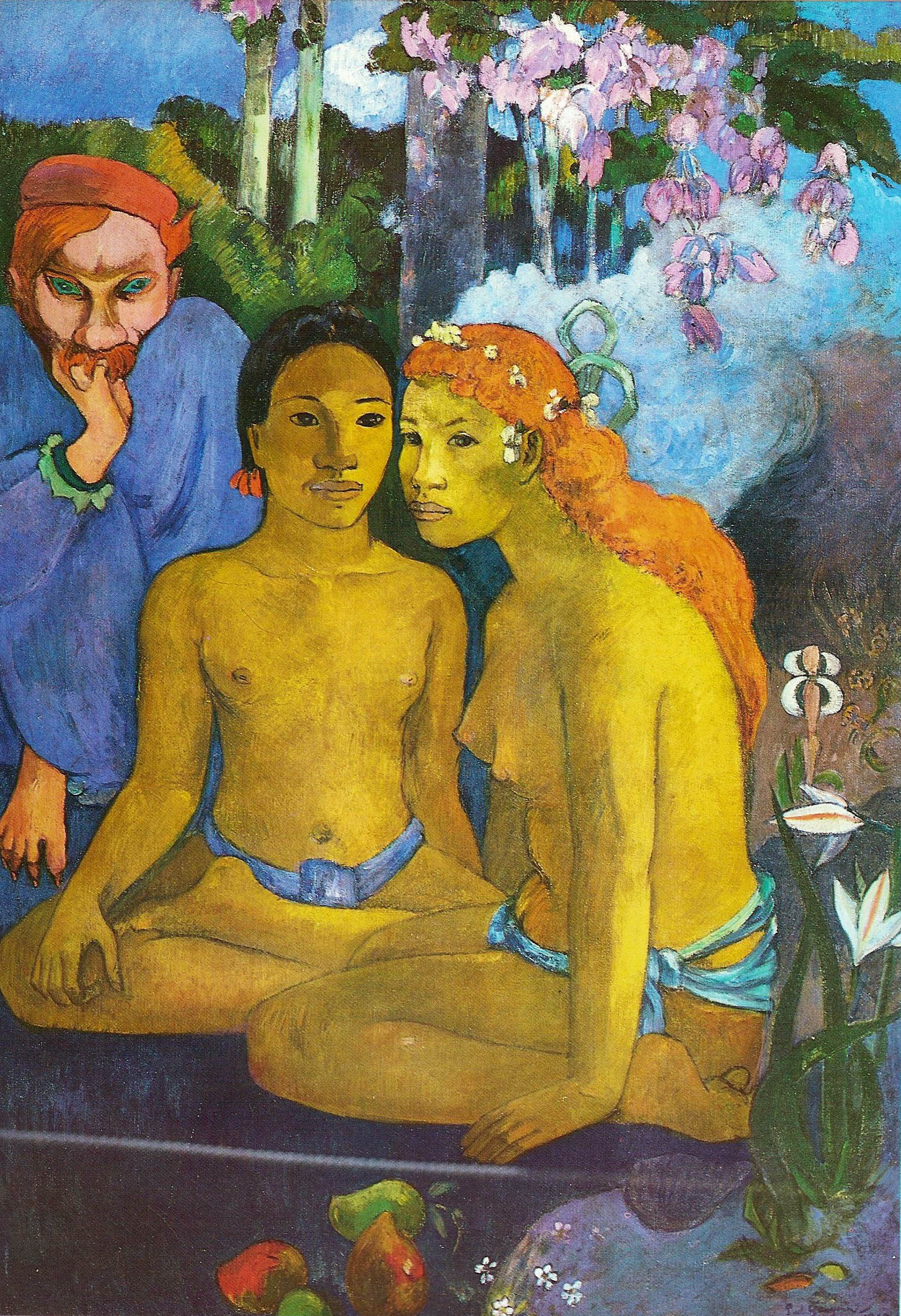 Paul Gauguin mesés hangulatú képei szintén sokat merítenek az egyiptomi festészet síkszerű stílusából. A piac című képén az önmagukat bárcáikkal legyező polinéz örömlányokat egyiptomi háremhölgyeknek látjuk. A hasonló bőrszín, illetőleg az egyiptomi sírkamra faláról kölcsönzött kompozíció révén szinte észre sem vesszük a különbséget. Gauguint különösebben nem hatotta meg az európai szépségeszmény. Ám egyik legutolsó és legszebb képén a különféle kultúrákat jellemző valamennyi formanyelv tökéletes összhangba olvad. A Barbár meséken két félmeztelen nőalakot látunk és egy kékszínű köntösbe burkolt, démonszerű európai férfit: ő képviseli az önmagát is felzabálni képes Szellemi Szférát a képen. A lótuszülésben kuporgó nőalak ismét eszünkbe juttatja Egyiptomot, nevezetesen az Írnok szobrát, ám az ő tekintete a semmiségbe réved, így valószínűleg Buddha szobrai inspirálták. A Botticellit idéző vöröshajú nőalak talán maga az anyatermészet. Mesés hajzuhataga sűrű illatfelhőbe burkolódzik. Mögötte egy komplementer színt, furcsán kanyargó zöldszínű növényi indát fedezünk föl – talán az egyiptomi „Életjelet”? – Meglehet. Különösen, ha hozzáolvassuk a mellette álló, szintén zöldszínű fa oszlopszerű törzsét: In aeternum…