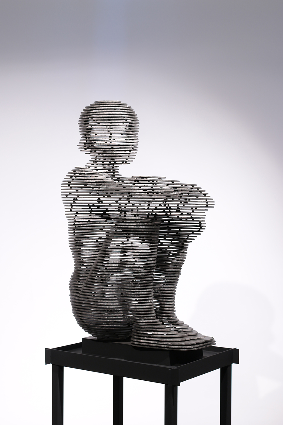 pontra került, formanyelve és munkamódszere kimunkált. Ekkor határozott az acél mellett, azon belül is az előre szeletelt, horizontálisan vagy vertikálisan elhelyezett és meghatározott pontokon „szünetekkel” összehegesztett lemezek mellett. Ilyen módon komponálja, rajzolja ki a figurát, amely a benne és körülötte létrejövő tér- és fényviszonylatok mentén nyer érvényt. A tömör, kemény acéllemezek és a fény–levegő azonos ritmusú váltakozásával a művet körülvevő tér és a figura kölcsönhatásából születik meg az egységes látvány, amely a mű környezettel való kölcsönhatásában változó élményt ad. Attól függően, hogy milyen távolságból, nézőpontból tekintünk az alkotásra, fedi fel áttetszőségét vagy telítettségét, amitől a statikus figura mozgásba lendül, az anyag pedig feloldódni látszik.