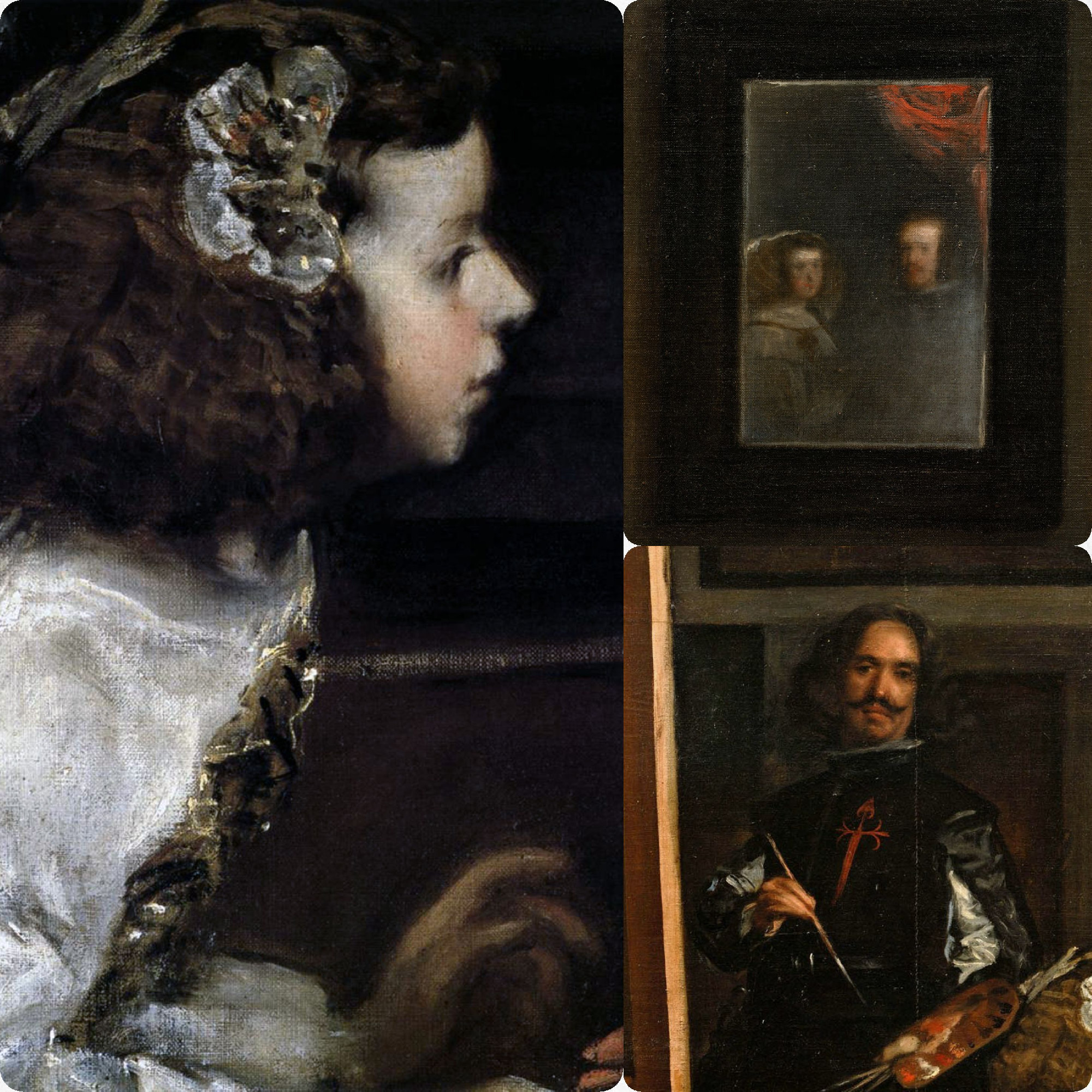 Nehéz szavakkal megközelíteni minden idők egyik legtökéletesebb és legtitokzatosabb olajképét. Az udvarhölgyeket – Las Meninas – bízvást tekinthetjük a Velázquez-életmű csúcspontjának, olyan opus magnumnak, amelyen felsorakozik a spanyol festőóriás összes motívuma. Velázquez szinte teljesen elsötétítette a madridi királyi palota egyik előkelő termét, hogy e remekmű a rá jellemző komor színekben pompázhasson. Összesen tizenegy alakot látunk a képen és egy nem kevésbé csodálatosan megfestett kutyát. Ismerve Velázquez legendás állatszeretetét: e hunyorgó kutya a festmény tizenkettedik szereplője. Barokk pompának semmi nyoma a képen, a falakon csak valószínűsíteni lehet Rubens festményeit, az egész terem olyan, mint egy hatalmas kocka vagy kazetta, melyben az ablakokon beáramló keskeny fénysávok teremtik meg a térmélységet. Lényegében a spanyol királyi családot látjuk a képen, hatalmuk csúcsán, Spanyolország történelmi aranykorában, ám olyan bravúros módon megfestve, ami Velázquez kortársainak és elődjeinek minden hasonló családi csoportképét jóval felülmúlja. A kutatók mára név szerint is azonosították a szereplőket. Három óránál két törpét látunk és a földön heverő kutyát, akik aligha véletlenül kerültek azonos fogalmi szintre: ők gondoskodtak a királyi család jókedvéről és értelmi szintjük sem sokban különbözött. Egyedül a mögöttük álló apáca (?) és egyházi személy (?) kiléte ismeretlen. Esetükben Velázquez olyan brutális „tenebrosó”-t (fényhatást) alkalmazott, ami önmagában is kérdésessé teszi azok álláspontját, akik „csak” klasszikus festőt látnak benne. Velázquez ugyanis teljesen önkényesen mosott el vagy élesített ki bizonyos részeket festményein, melyeket aligha lehet pusztán a speciális fényviszonyokkal magyarázni.