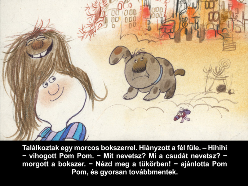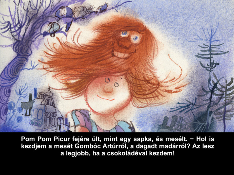 Jó volt „visszautazni az időbe”, és egy kicsit nosztalgiázni. Megmosolyogni Sajdik humoros figuráit, melyekre nem lehet nem szeretettel nézni. Itt van mindjárt a Pom Pom meséi egyik főszereplője, Gombóc Artúr, aki imádja „a kerek csokoládét, a szögletes csokoládét, a hosszú csokoládét, a rövid csokoládét, a gömbölyű csokoládét…”. A kövér kék madár édességfüggősége ellenére vagy tán épp ezért is, kedves a szívünknek. Esendőségében saját gyengeségeinkre (függőségeinkre) ismerhetünk, rajongásával pedig könnyű azonosulni, még ha ez Gombóc Artúr esetében kimerül a különböző csokoládékban. Ám talán éppen ez az „egyoldalúság” teszi őt mulatságossá. De említhetném a Nagy ho-ho-horgász elszánt pecását is, aki szenvedélyének hódolva számos kalandot él át hűséges társával, a csak henyélni óhajtó Főkukaccal.