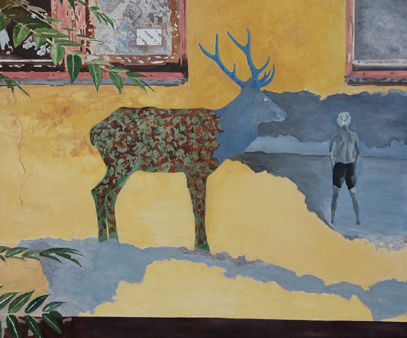 Akármerre tekintünk, a figuratív festmények főszereplői egy-egy cselekvés vagy mozdulat közben tűnnek fel, ahol kiemelt szerepet kap a képek hátteréül szolgáló, ütött-kopott falakat idéző közeg, amely mögött különböző életképek, izgalmas történések sejlenek fel.