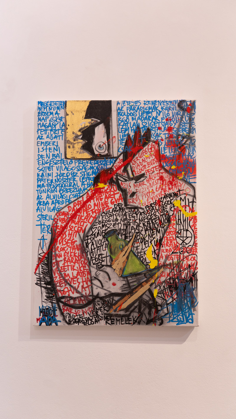 A művek visszatérő motívuma a hiány: fehér foltok, zaklatott kompozíciók, erős színek és nyers anyaghasználat. Ugyanakkor megjelennek a játék, a vágy, a szexualitás és az intimitás gesztusai is. Több alkotás önarcképszerű: nem feltétlenül konkrét portrék formájában, hanem személyes tárgyakon, testfragmentumokon vagy a gyermekekbe továbbörökített vonásokon keresztül. Az apaság itt nem stabil identitás, hanem folyamatosan alakuló viszonyrendszer: egyszerre védelem és konfliktus, gondoskodás és bántás, jelenlét és eltűnés.