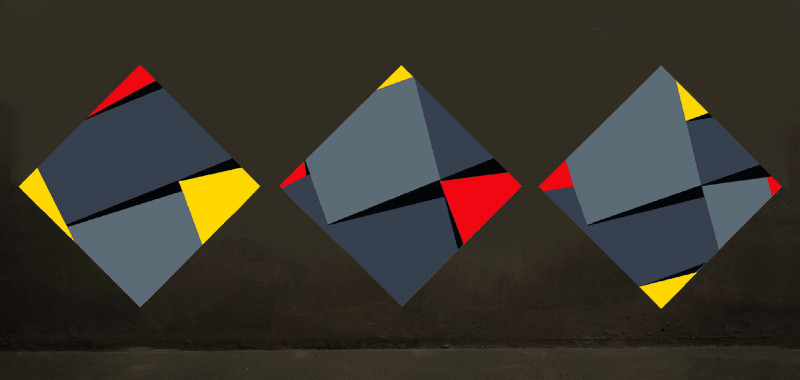 Előképek, értelmezési modellek után kutakodva az effajta absztrakció ügyében nem csak Theo van Doesburgot említhetem, akinek neve és tevékenysége vörös fonálként vezet minket a De Stijl csoporton/mozgalmon át, az egyik 1924-ben festett Ellenkompozíció című művén és a vele megpendített eretnek gondolaton – a dinamikusabb optikai hatás elérése kedvéért a neoplaszticista alapelemek körébe vont 45 fokos szög esetén – keresztül, az 1930-as kiáltványában meghirdetett konkrét művészet elvéhez. Innen öles léptekkel vehetünk irányt Max Bill Ulmi Iskolája és egy magyarországi rokon törekvés, jelesül a Zuglói Kör számbavétele után, Mark Starel és Szlabey diszkurzív geometriája felé.