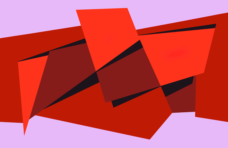 A festő a materiális világban hagyva a hajlítás, a vágás, a kitakarás műveleteit, a képi építkezés egynemű közegében engedi szárnyalni a színek és a formák autonóm téralakító erejét. Ezért nincs is szüksége tónusokkal bíbelődve túlbonyolítani az elkülönülő felületeket. Mindezzel a konkrétség jogait engedi érvényre jutni és beteljesedni.