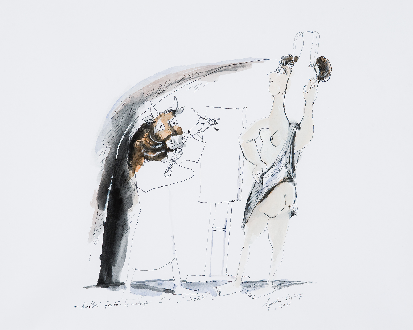 futamodó, hullámot vető vagy éppen rezegni kezdő vonal karcsú rajzolatában, vagy a testesebb tónusokban, az árnyalatokban, az egymásnak felelgető színekben is ugyanúgy ott van a lélek, amit a rajzfilmesek úgy ragoznak tovább: animus, anima, animáció. 2006-ban Tényi Pista filmet forgatott rólunk; kettős portrénak nevezte, Találkozás a kertben, ezt a címet adta neki, a helyszín, a kert, Líviuszék újpalotai kertje volt, mert akkor már ott laktak, s mi is elköltöztünk Budakeszire. Szóval messze kerültünk egymástól, legalábbis látszólag. A négysoros szerint, amelyet Vennes Emmy, Líviusz színésznő felesége szavalt el a filmben, a távolságra fütyültünk.