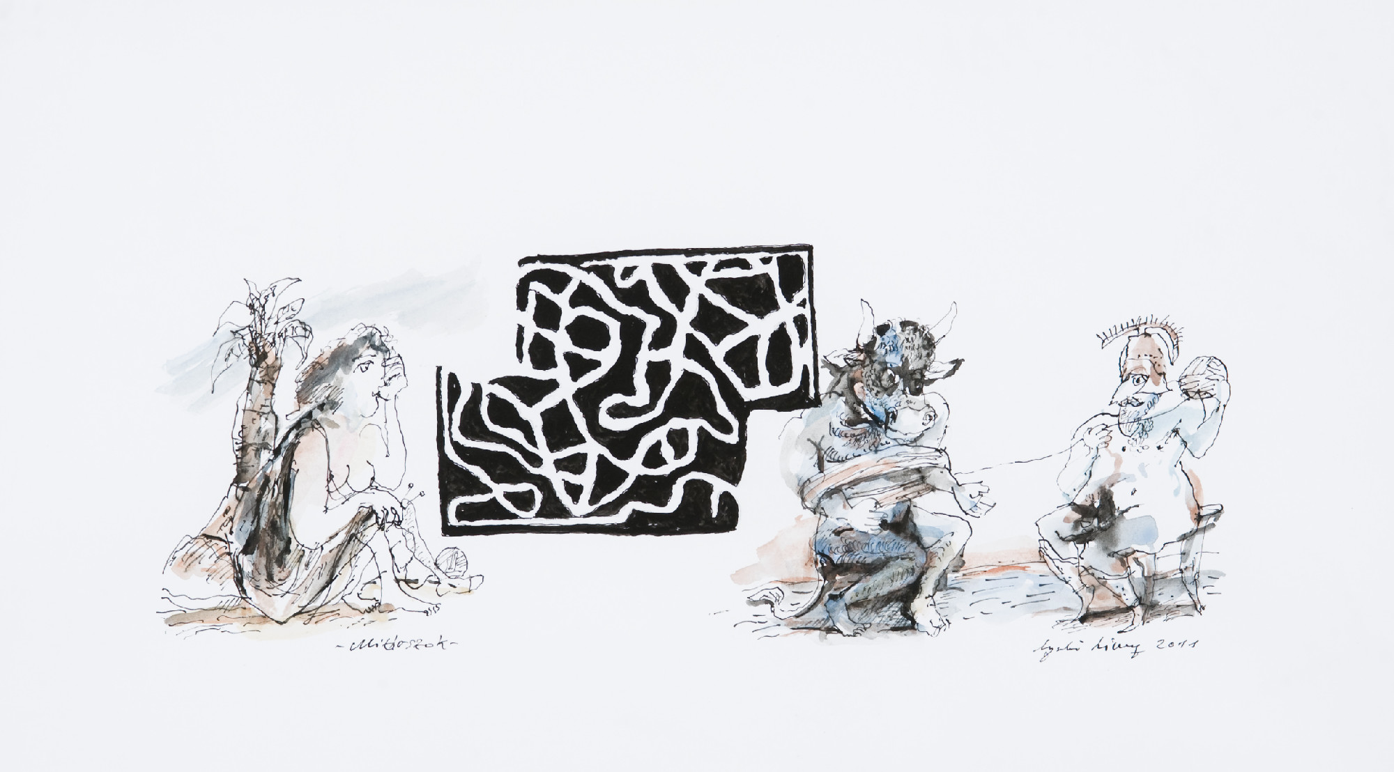 Április 11-én született Marci fiam. Előző nap, 10-én zárt be a Mester utcai kiállításom – első komolyabb budapesti tárlatom –, amelyet természetesen Líviusz nyitott meg. Megtalálom a kiállítás szórólapját, az egyik képen őt magát rajzoltam le kentaurként, vagyis deréktól lefelé lótesttel. Akkortájt lett kész Új lakók című filmjével, melynek hősei egy kentaurcsalád tagjai, akik fura életvitelükkel, különös barátaikkal (sellők, faunok, minótauroszok, hárpiák járnak hozzájuk vendégségbe) és persze mitologikus meztelenségükkel nagyon kilógnak a függőfolyosós, szürke bérház nyárspolgári környezetéből. A házat természetesen a November 7. téri műteremlakás alatti bérházról mintázta. A lakók, élükön a házsártos házmesternővel pokollá teszik a kentaurok életét, akik nem tudván – de nem is nagyon akarván – beilleszkedni, elhagyják a házat, amelyről azonban kiderül, már nem lehet úgy lakni benne, mint azelőtt. A magukra maradó lakókban, legfőképp a gyerekekben kicsírázik a gondolat: másként is lehetne élni, sőt másképpen kellene. A cannes-i meg a kairói, a szaloniki és a lipcsei filmfesztivál zsűrije alighanem pontosan értette a szatíra mögötti áttételeket, amikor versenybe válogatta és díjazta a filmet. A hatalmát fitogtató házmester nemcsak Gyulainál jelent meg, Szoboszlay Péter Rend a házban című filmje teremtette meg a rajzfilmes prototípust, amely az irodalomba – legemlékezetesebben Ficsor „elvtárs” révén – már jóval korábban bejelentkezett. Irodalom: kevés olvasottabb embert ismertem, művészek közt egyet sem. A pesti antikváriumokba ő vezetett be, ahol a pult alatti könyveket is elővették neki. Legtöbben illusztrátorként ismerik. Látszólag különbözők a témák: Weöres Psychéje, Sterne Érzékeny utazásai, Molière Fösvénye, Csokonai Karnyónéja, Villon: Hadova és Hamuka meg az édes Krúdyádák, De Ronch kapitány és az emblematikus rajzfilmalteregó: Jónás, meg persze kistestvére, a naplóíró Komisz kölyök. Mindegyikhez tökéletes formát talált, kifogástalan technikát, eszményi stílt, és mégis, csorbítatlanul ő maradt: Gyulai Líviusz.