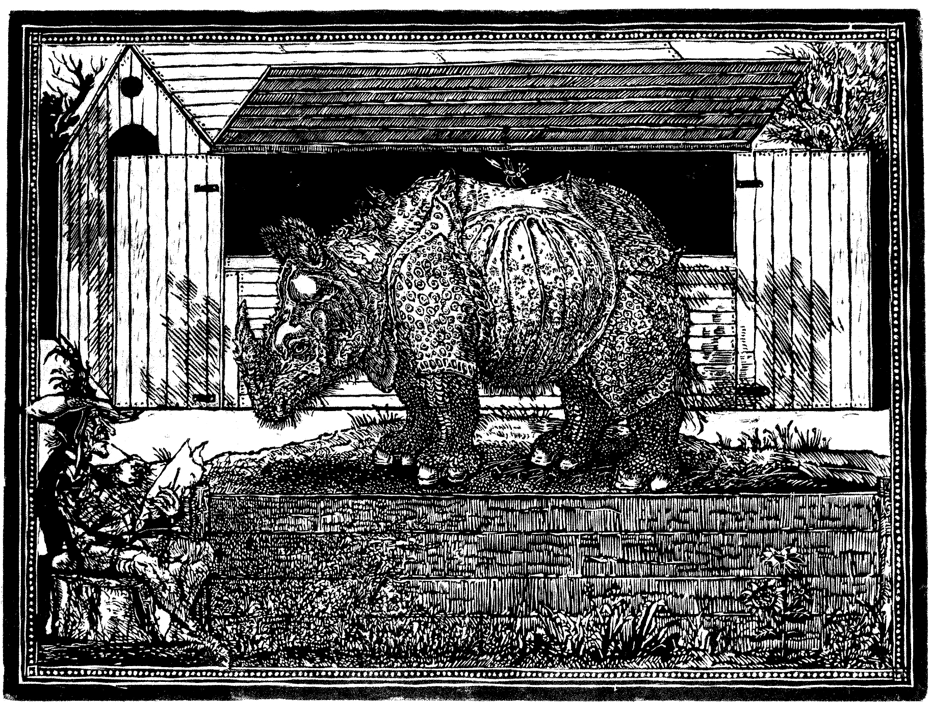 Akkoriban, 1981. szeptember 17-én nyílt Líviusz kiállítása a Műcsárdához (ő hívta így) tartozó Dorottya utcai galériában. A plakát megtervezésére engem kért meg, én pedig az ő egyik rinocéroszparafrázisából kiindulva láttam munkához. A rinocéroszokról – úgy is mondhatnám, a grafikusok címerállatáról külön regény szólhatna, ami Dürerrel, illetve a legelső Európába érkező orrszarvúval kezdődhetne. 1515 májusában, Lisszabonban kikötött egy hajó, a fedélzetén ezzel a különös lénnyel. Muzaffar szultán ajándéka volt I. Manuel portugál uralkodónak. Gyorsan szertefutott a híre, Nürnbergbe is elért, ahol Dürer, aki sose látta, tollrajzot, majd fametszetet készített róla. Az övé az első művészi reprezentáció, és azóta la nave va…, ahogyan Fellini filmjében is. Líviusz már sokadszorra metszette meg az orrszarvút, amelyet a Dorottya utcai plakátra választottam. Nem kellett magyarázni a szimbolikát, és a jelkép kiválasztása mögül elősejlő öniróniát sem. Talán ma sem kell. Ez a nehézkes, döccenve mozduló, kihalófélben lévő teremtmény, igen, ez maga a fametszettel, litográfiával, tollrajzzal, rézmetszettel dolgozó szabadkézi művész, az illusztrátor a komputerek csillogó, ám átlátszó világában; talán egy kissé annak ellenében is.