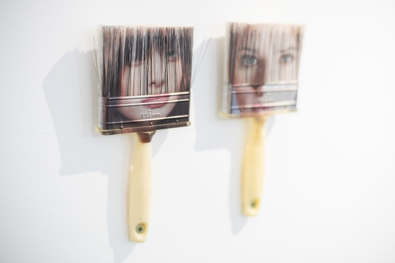 Ezt azért is érdekes mert a többiek a humorral operálnak. A kiállítás voltaképpen egy geg, amely tükröt tart a fogyasztói társadalom elé, egyfajta fricska a művészeti piacnak. A H air-brush (2015) ecsetjeinek szőrszálairól szépséges női arcok tekintenek ránk. A Huszti János alkotta pemzlik szinte mágnesként vonzzák a tekintetet, hiszen nem szokványos fényképszerű arcokat applikálni egy festőeszközökbe.