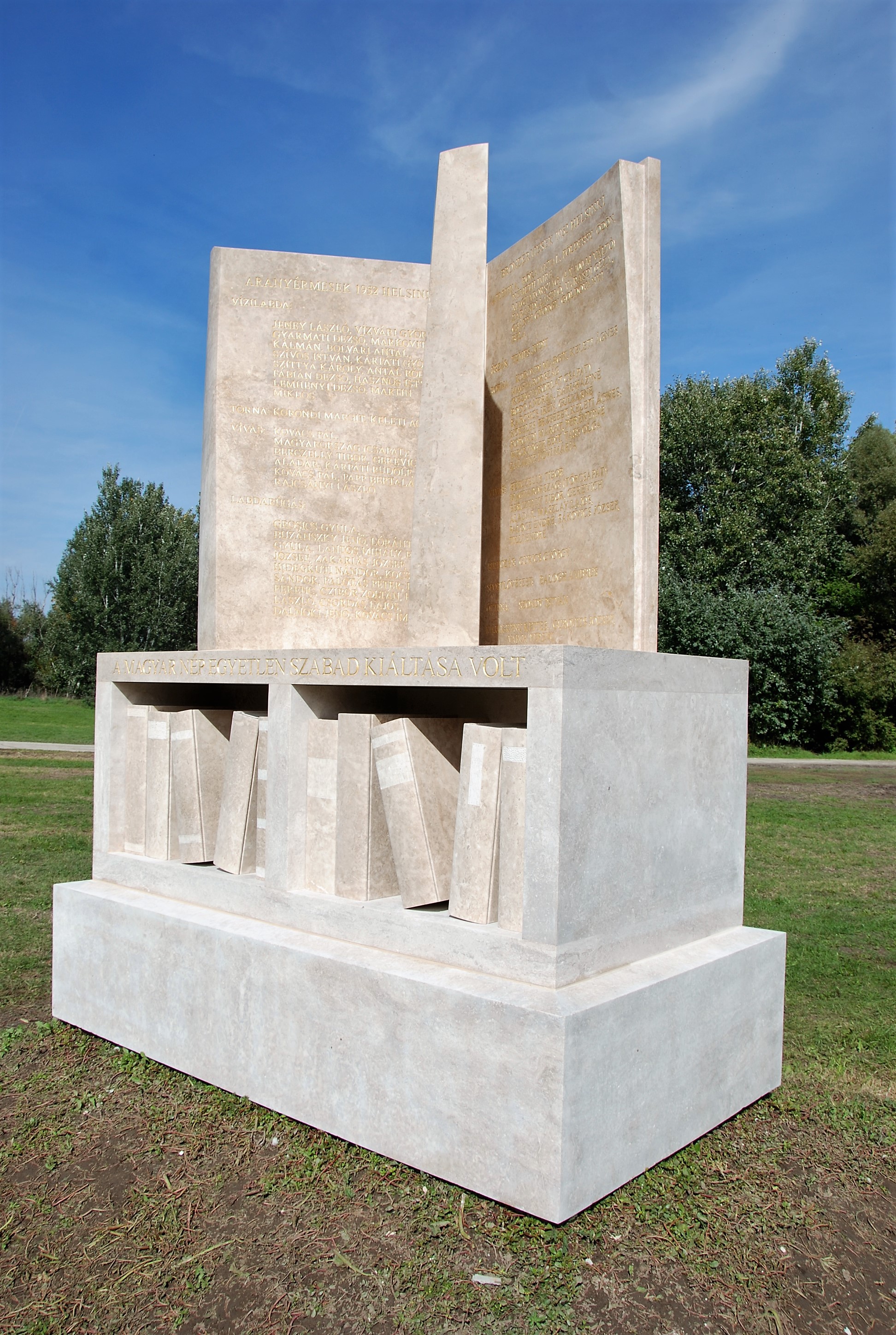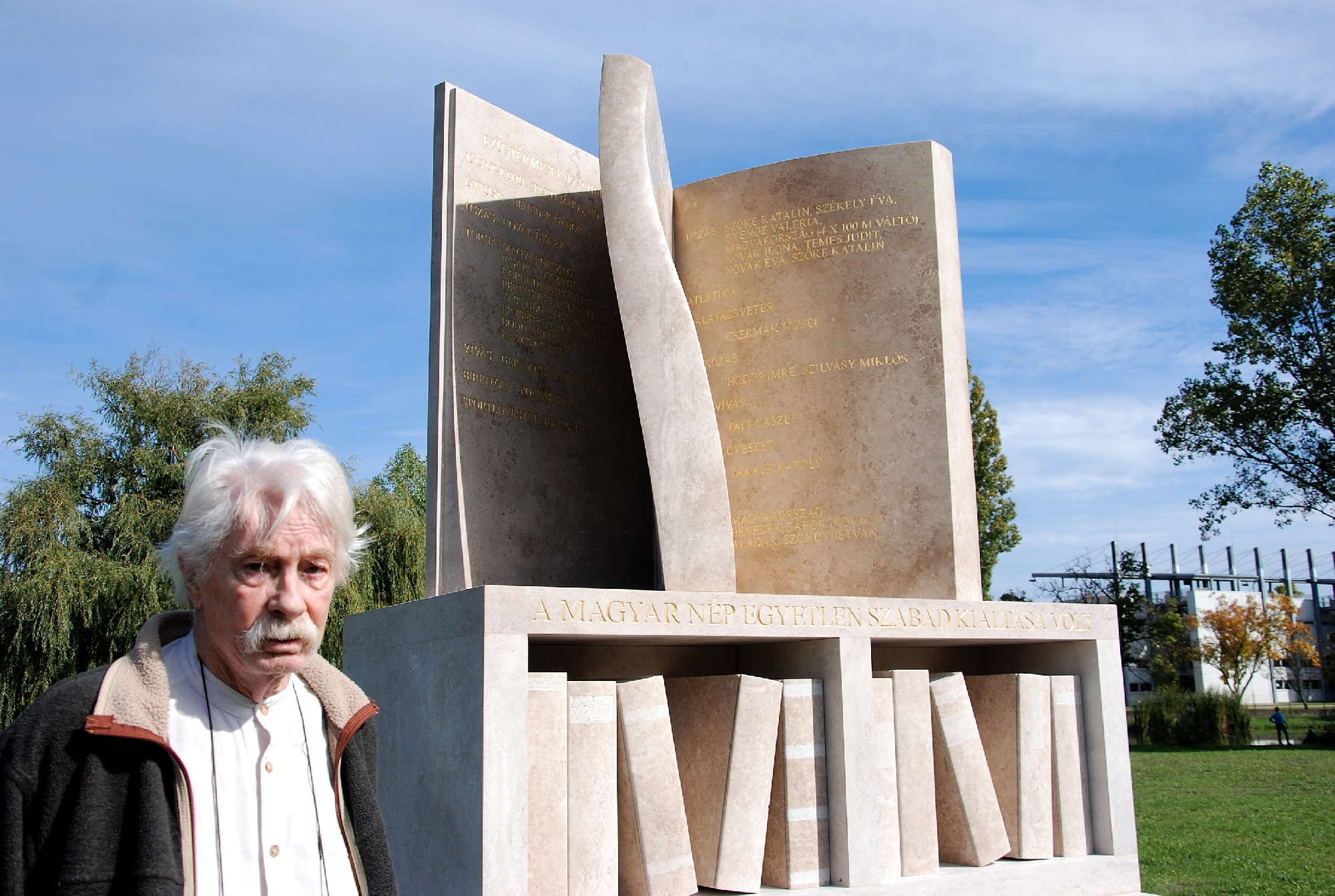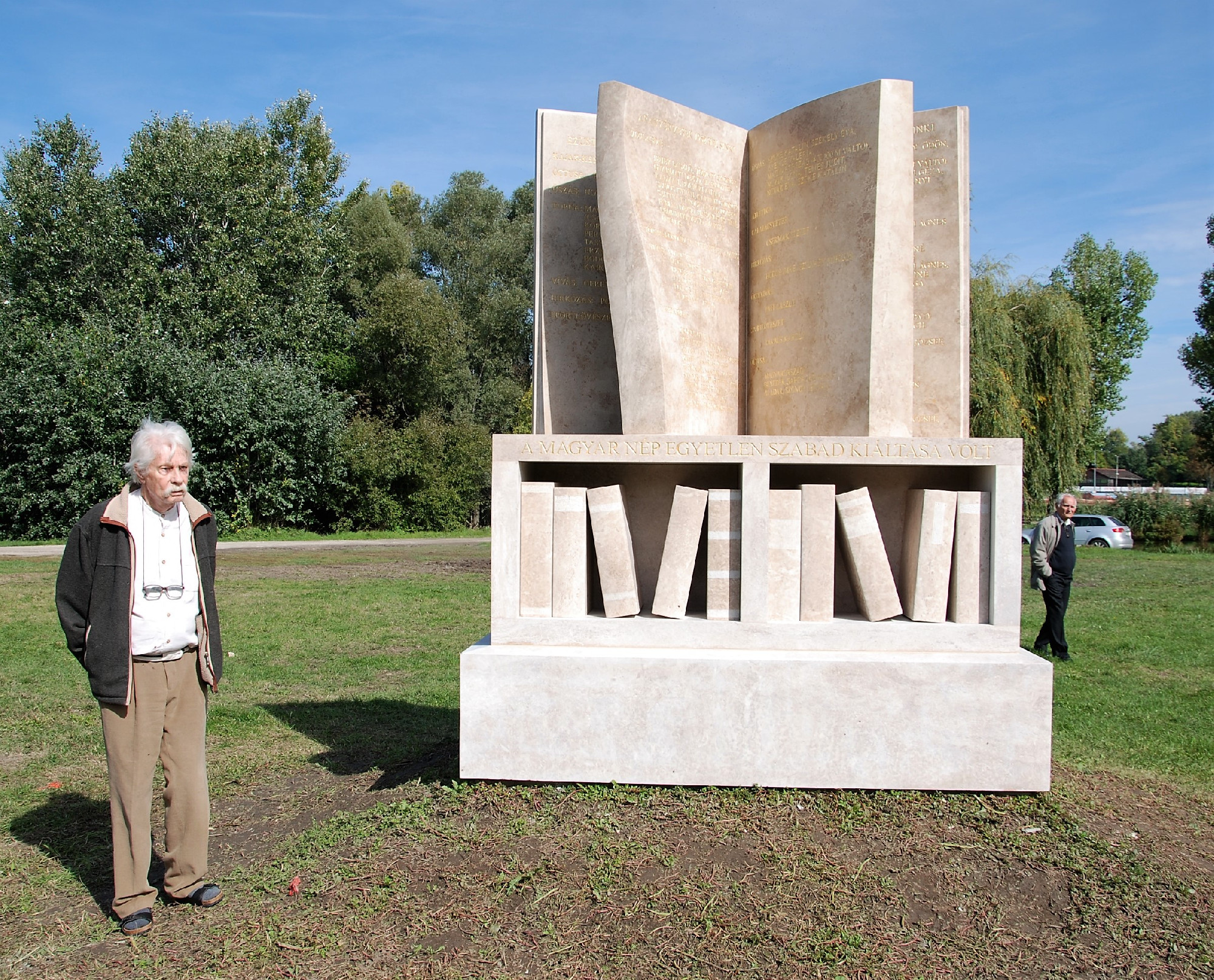 Az emlékmű áll. Aranylapjai nyitva. Nézd és olvasd!