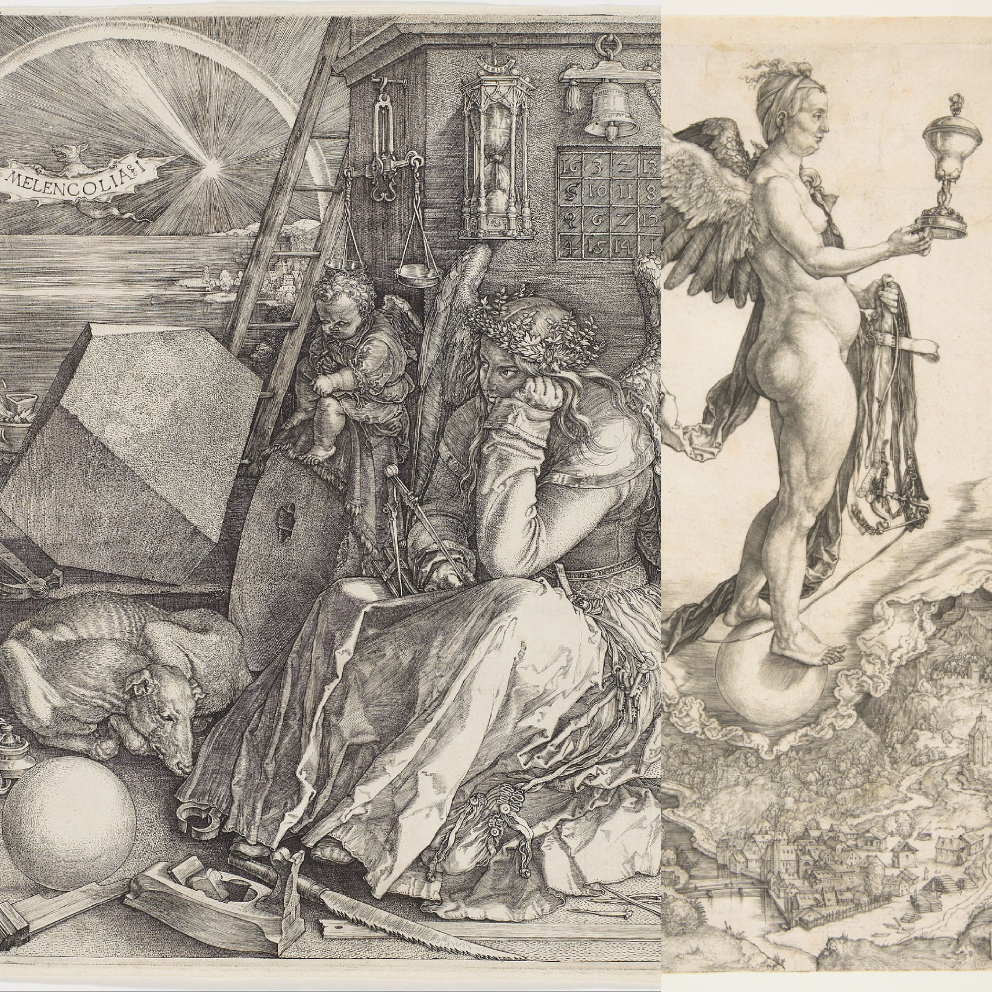 Dürer rejtélyes metszetének töprengő angyala – Rodin Gondolkodójának korai előképe – még nem döntötte el, rombolni fog-e vagy építeni. A szüntelenül pergő homokórát leszámítva a képen mindenütt béke és nyugalom honol, ugyanakkor minden szunnyadó dolog: a szerszámok, a létra, a földgömb, a mérleg, a csengő, az angyalszárny, az összekucorodott agár a lehetséges mozgás érzetét kelti. A két óránál látható csengő zsinórjáról nem tudjuk, hová vezet – talán a Teremtőhöz –, és még az alatta fekvő „mágikus négyzet” sem mondható teljesen statikusnak: a számok összege minden sorban, oszlopban és átlóban pontosan 34 lesz, amelynek jelentése évszázadok óta foglalkoztatja a kutatókat, ám a „Dürer-kódot” még nem sikerült egyértelműen megfejteni. Dürer képe talán az alkímiai folyamat legelső stádiuma, a „feketedés” (Nigredo), amikor az emberi elmét uraló depresszív „fekete epe” még nem ürült ki teljesen a szervezetből, és még nem vette kezdetét a teremtő erőket mozgásba hozó második stádium, a „fehéredés” (Albedo). A háttérben már ott ragyognak a felkelő Nap (vagy üstökös) legelső sugarai, a kép címe – Melankólia I. – ugyanakkor roppant hatásos módon még egy bőregérszárnyra van kifeszítve.