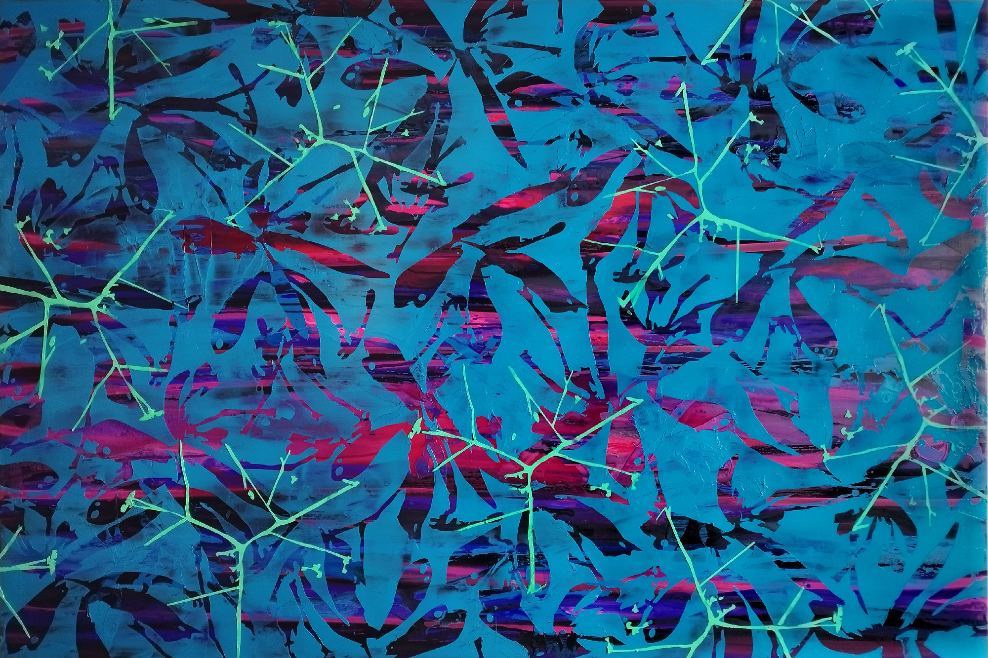 A kiállítás fókuszában a természet sejtelmes, titokzatos karakterisztikája áll, ami még inkább mélyíti a megismerése és a kapcsolódás iránti vágyakozást. Ernszt András festményei és Körei Sándor üvegszobrai meditatív szemlélődések a természetben, amelynek során a művészek maguk és a néző is próbálja megfejteni, megérteni a természetbe vetettség absztrakt létélményét. Ernszt festményei síkban imitálják a derengő tájak térbeli illúzióját: az egymásra rétegződő ágak, hajtások és a lombkoronák kavalkádját utánzó rétegek delejes erdei tájak, amelyekben könnyen elvész a tekintet. A vastag, ködös takaró akrilrétegen keresztül felsejlik a nyomhagyás szándéka, a festék folyatásában vagy a festőkéssel expresszíven felhordott festékben az alkotói gesztus, míg mellette a kvázi főszerepben megjelenő konkrét természeti formák precíz rendezettséggel és szerkesztettséggel mutatnak rá a természetben rejtetten megjelenő matematikai szabályrendszerekre. Körei művei a természet és az emberi beavatkozás komplex viszonyát vizsgálják.