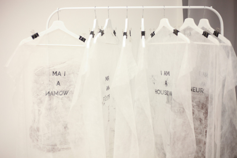 Az Identitás (2023) című installációban nyolc szerepkört sorol fel – anya, feleség, művész, vállalkozó, háziasszony, szervező, vezető, nő –, mintha egyfajta láthatatlan szuperhősruhát öltene magára. A textilre írt kijelentések egyszerre működnek önmegerősítésként és önkritikus gesztusként: a társadalmi elvárások és az egyéni vágyak széttartó szálait próbálják egybeölteni.