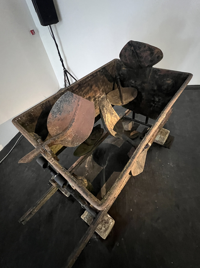Amikor megmozgatod, akkor bizony ad egy kongó hangot, zajt ez is. A lapátok azt szimbolizálják, hogy már nincs szén, nem lehet megrakni a csillét a szívlapáttal. Akkor már kényszerből szívlapáttal rakják meg a lyukas csillét. Hogy mondjam, a végkifejlet, hogy az eszköz, amit használtál, éltetett, fizettek érte, már azt is feladtad, már nincs. Vége.