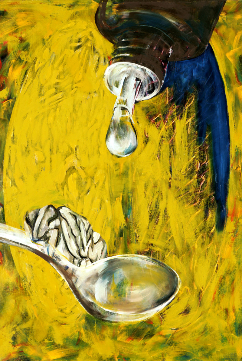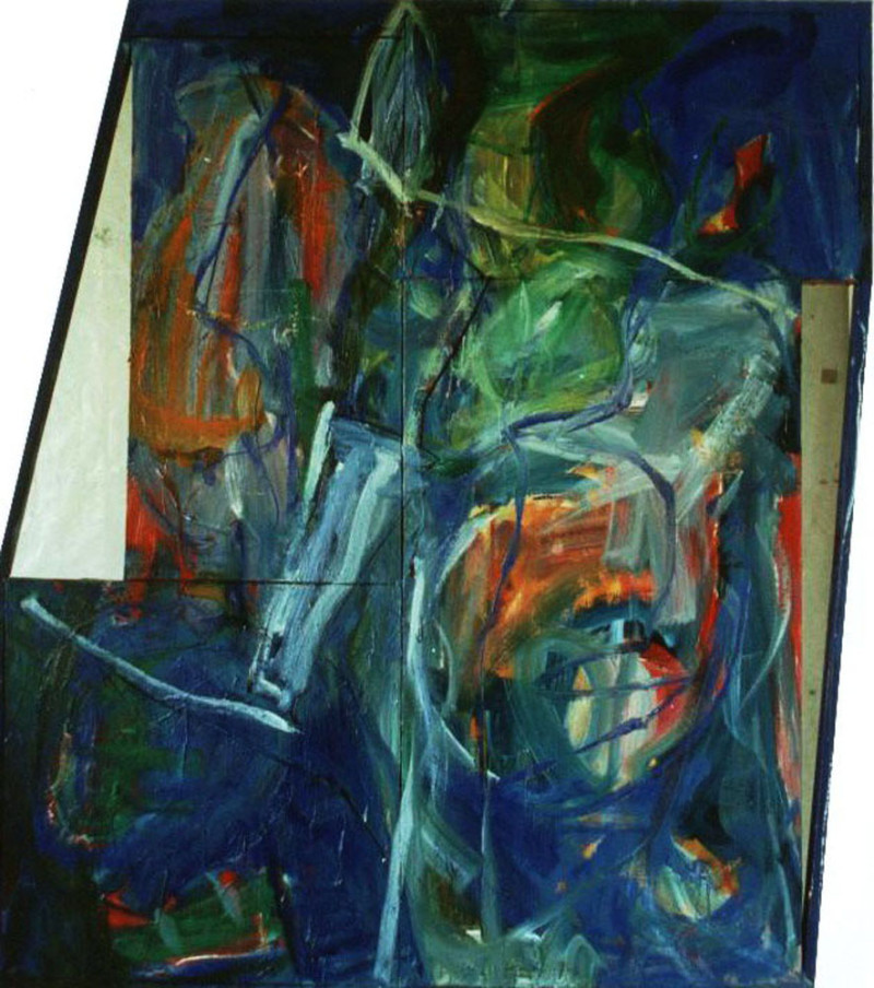 Érdekel a fizika, az elméleti fizika is. Akkortájt olvastam arról, hogy az atommag térfogata jóval kisebb, mint maga az atom, így az utóbbi leginkább üresnek mondható… Annyira elvarázsolt, hogy mibennünk, ahogy minden létezőben, több az üresség, mint az anyag, hogy eldöntöttem, a festmények negatív terét olyan sűrűn töltöm ki, mintha az is anyagból lenne. Az említett sorozat képeiben a pozitív formák és a negatív térfelület kezelése között alig van különbség, a néző vizuális fantáziájára, képzelőerejére van bízva, hogy „kihámozza” a motívumokat a sűrű szövetű ecsetvonásokból. És valóban a Színerőn készült két nagyméretű kép talán a legsikeresebb ebből a sorozatból.