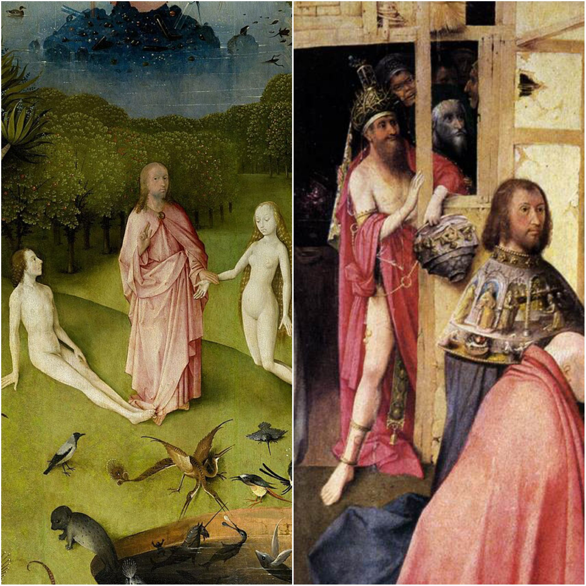 A Krisztust körülvevő négy hóhér portréja hasonló műgonddal készült, és szintén rendkívül titokzatos. A töviskoronát a 10 óránál látható római katona helyezi föl. Nyílvesszővel átszúrt törökös turbánt visel, arcvonásai primitívek. A töviskoronát tartó kézvért praktikus megoldás, ám nyilvánvaló anakronizmus: Bosch részben saját korába helyezte át a Biblia cselekményét. A 2 óránál álló hóhér szöges nyakörvet visel, amit általában úgy értelmeznek, hogy „Krisztus kutyák közé került”. Ám ennek a római katonának arcán mintha részvét és szánalom tükröződne, mintha azt mondaná: feljebbvalói parancsát csupán kényszerből teljesíti, és a nyakörv e szolgalelkűség és röghöz kötöttség szimbóluma. Jóval nehezebb lenne megbocsájtani a 4 és 8 óránál elhelyezett démoni figuráknak. A 4 óránál álló alak szadizmusa jelentős mértékben különbözik a vele átlósan álló római katona szadizmusától. A töviskoronázást végző római katona arcvonásai agresszívek és primitívek, míg a héber pap (?) intellektuálisabb mimikájáról egyértelműen leolvasható, mennyire gyönyörködik a brutális jelenetben. Mintha Bosch mindenki másnál mélyebbre merülne mint lélekbúvár, és rejtett kapcsolatra bukkanna intelligencia és szadizmus között. És meg sem állna ezen a ponton: a 8 óránál álló emberdémon Krisztus kezét „simogatja”, miközben szemmel látható módon szemérmetlenül élvezkedik. Bosch félreérthetetlen összefüggést ábrázol fizikai erőszak (autodafé) és szexuális aberráció között. Ehhez foghatót korábban valószínűleg még senki sem festett, ám maga Bosch már a Mágusok imádásán megjövendölte az emberi psziché ezen abszolút nulla fokát a rozzant betlehemi jászolból kukucskáló bíborpalástos aberrált Krisztusdémon személyében. Ez a motívum is ékesszólóan bizonyítja, Bosch látszólag kaotikus világa milyen tudatos módon épült, és milyen pszichológiai mélységeket jelenít meg.