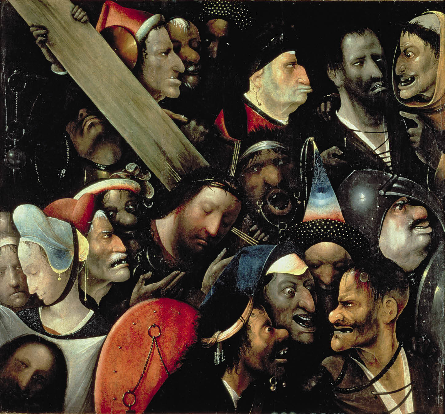 A híres Keresztvitelt évszázadokon át Bosch egyik utolsó remekművének tekintették, manapság egy ismeretlen Bosch-követő művének tartják, ám az sem zárható ki, hogy Bosch elveszett képének kiváló másolata. Kompozíciója nagyon hasonló a két fenti képhez: rendkívül zsúfolt, és minden lelki folyamatot kizárólag az arcok, a kezek és a tekintetek segítségével jelenít meg, nincs háttere, sem térmélysége, és üresen hagyott felületei is alig vannak, bár kissé „szellősebb” náluk, ugyanis elemi erejű sötétség itatja át, amelyből démoni szemek, csorbacsík fogak és csillogó testékszerekkel átszúrt fülek és orrok villannak ki, előrevetítve a kereszthalált. Az arcok sokkal groteszkebbek, karikatúraszerűbbek és színpompásabbak. A bal lator szinte hamuszürke, a borissza római katona arca pirospozsgás. A Mária-csoport ellenben selymesen puha gyöngyházfényekben fürdik. Mária Veronika-kendőjén fedezzük fel Krisztus valódi arcát.