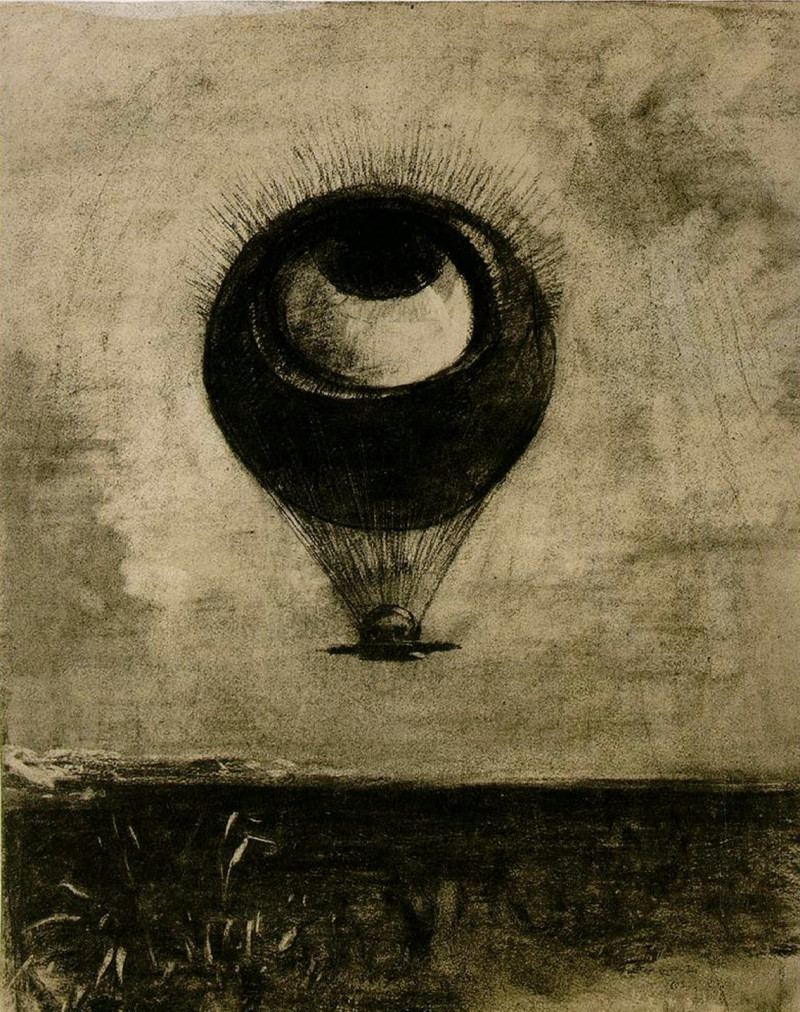 Redon korai, „fekete korszakában” az egyik leggyakoribb motívuma a szem – gyakran test nélküli, óriási, lebegő szemgolyó formájában. A Szem-ballon című műve különös, szürreális rajz, amely egy emberi szemet ábrázol egy hőlégballonszerű test tetején, amint az az égen lebeg. A ballon teste organikus, könnyed, lebegő formaként jelenik meg, hosszú zsinórok lógnak lefelé, mintha rögzíteni lehetne valamihez. A háttér sejtelmesen üres vagy ködös – a tér határozatlan, ami álomszerűvé teszi a jelenetet. A kép Redon kísérletező, álomszerű grafikái közé tartozik, és része a Les Origines (Az eredetek) című litográfiasorozatának. Mint valamennyi szürrealista alkotás, nem könnyen értelmezhető. A művészettörténészek abban egyetértenek, hogy a lebegő, elszakadt formában megjelenő szem az „intellektus elszállása” vagy a „spirituális tekintet” képe lehet. Mivel a ballon gyakran a szabadulás, a transzcendencia vagy a fantázia eszköze, a földi kötöttségektől való elszakadás képe, ebben az összefüggésben a szem (mint megfigyelő szerv) emelkedik az anyagi világ fölé – ez lehet az intuíció, a képzelet, vagy akár az isteni látás allegóriája. Redon ezzel a képpel megelőlegezi a szürrealizmus képi világát, amely később Dalínál vagy Magritte-nál pontosan az ilyen irracionális képekből építkezik. André Breton is nagyra értékelte Redont mint „a szürrealizmus előfutárát”.