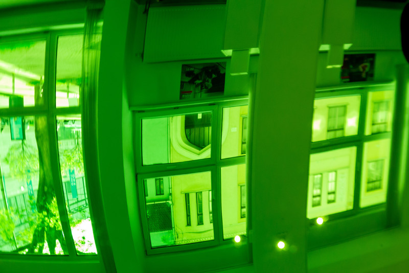 Konvex–konkáv tükröződő felületeken alapul az Ego/Mirror. a lentikuláris nyomatok (az idősebbek emlékeznek még a „kacsintós” pénztárcára) elvét alkalmazza, mely szerint a szemlélő mozgása során a kép megelevenedik, a mozgás illúzióját kelti. Az antik hatású keretbe helyezett homorú és domború tükördarabok itt azonban széttörik a látványt, a néző mozgása valóban megeleveníti a látványt, ugyanis saját mozgásának erősen módosított tükrözését látja. A képcímben jelzett „ego” rámutat az én-re, arra, amit nem választhatunk el a percepciótól, sőt, ahogyan ezt a művész hangsúlyozza, a keleti filozófiákban megjelenő ego a világ fizikai és metafizikai viszonyrendszerének, külső és belső értelmezési hálójának kiindulópontját jelenti. Egyszerűen fogalmazva: a környező világ csak az egyénen keresztül érzékelhető és így csupán annak viszonylatában létezik. Azaz: az ember látásában létezik a világ. A bejárathoz közeli falra helyezett lentikuláris táblák feliratai is attól függően változnak, hogy honnan nézzük őket.