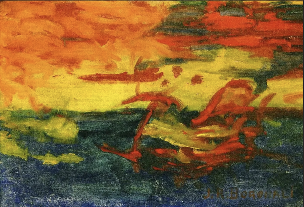 Az 1910. március 18-án megnyílt kiállításon a huszonkettes teremben különös festmény volt látható. Az És a nap leáldozott az Adrián című absztrakt mű alsó felét kék sáv uralja, amely a tengert idézi, míg felső felén sárga, piros és narancs a naplementét. A festmény bal alsó sarkában „JR BORONALI” szignó szerepel. Addig senki sem hallott erről a művészről. A kiállítás katalógusa szerint Boronali fiatal olasz festő, Joachim-Raphaël Boronali, aki új művészeti irányzat, az „excesszivizmus” elméleti megalapítója.