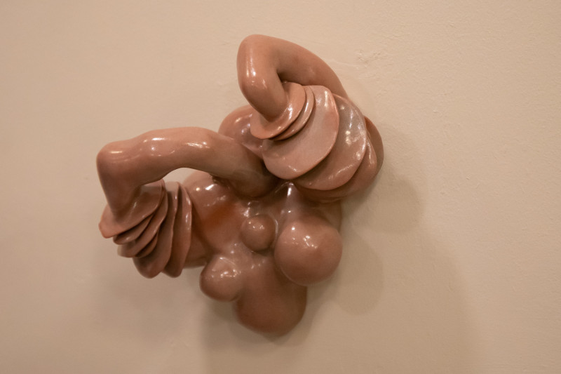 Az Elfeledett megtestesülések birodalmában című kiállítás átfogó tematikája az elidegenedés jelensége, az a távolság, amely önmagunk és mások között keletkezik. Az eltávolodás a testtől, a természettől, a saját tapasztalatunktól. A művek nem dramatizálják ezt az állapotot, inkább érzékeny terepet hoznak létre a kapcsolódás újragondolásához. A megtestesülés, az embodiment a koncepcióban kulcsfogalom. Annak felismerése, hogy a tapasztalat nem pusztán intellektuális, hanem testi jelenlétben gyökerezik. A feminin minőségek, a ciklikusság, a szervesség, a megszületés és elmúlás ritmusa nem deklarált tematikaként, hanem formai emlékezetként jelenik meg. A testre utaló részletek nem tudatos ábrázolások, inkább ösztönös visszhangjai a sajátos tapasztalati horizontnak.
