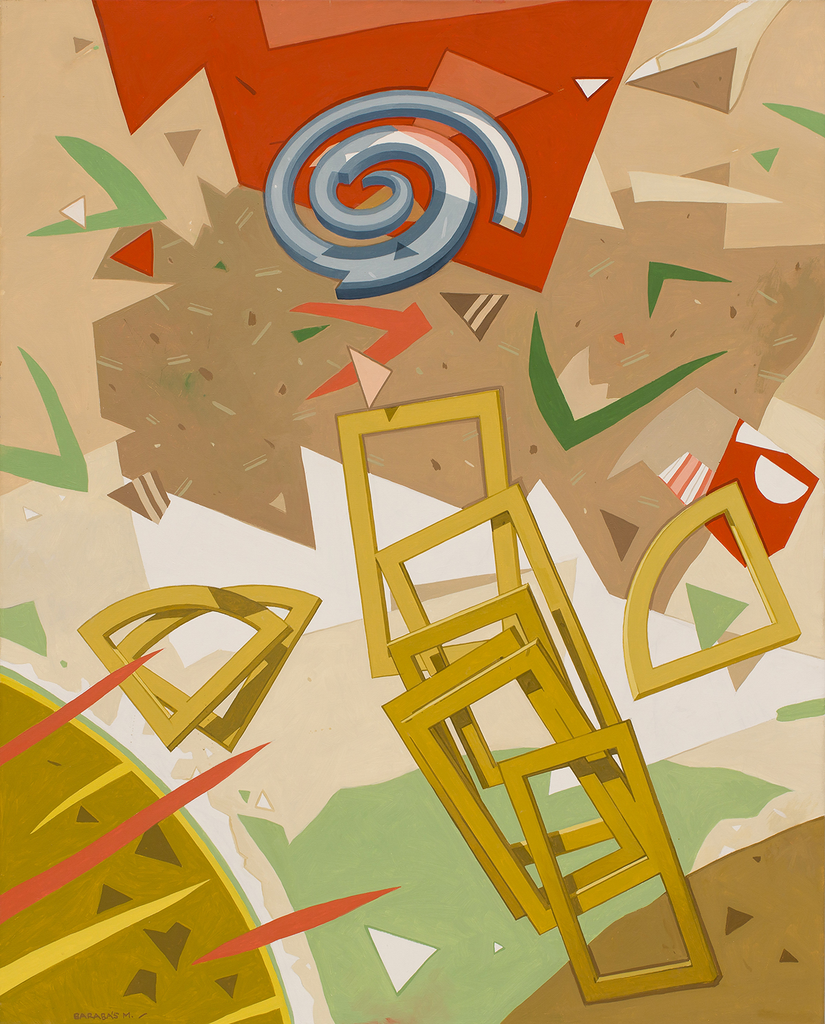 A nyolcvanas évektől a geometrikus absztrakció irányába fordult Barabás a teret, a sík és tér problematikáját, az elmozdítás lehetőségét kutatta. Erről vallanak a Mansfeld Galériában megtekinthető térbeli művek is, a spirálisan rendezett kalapácsokból, drótokból „épített” síkplasztikák.