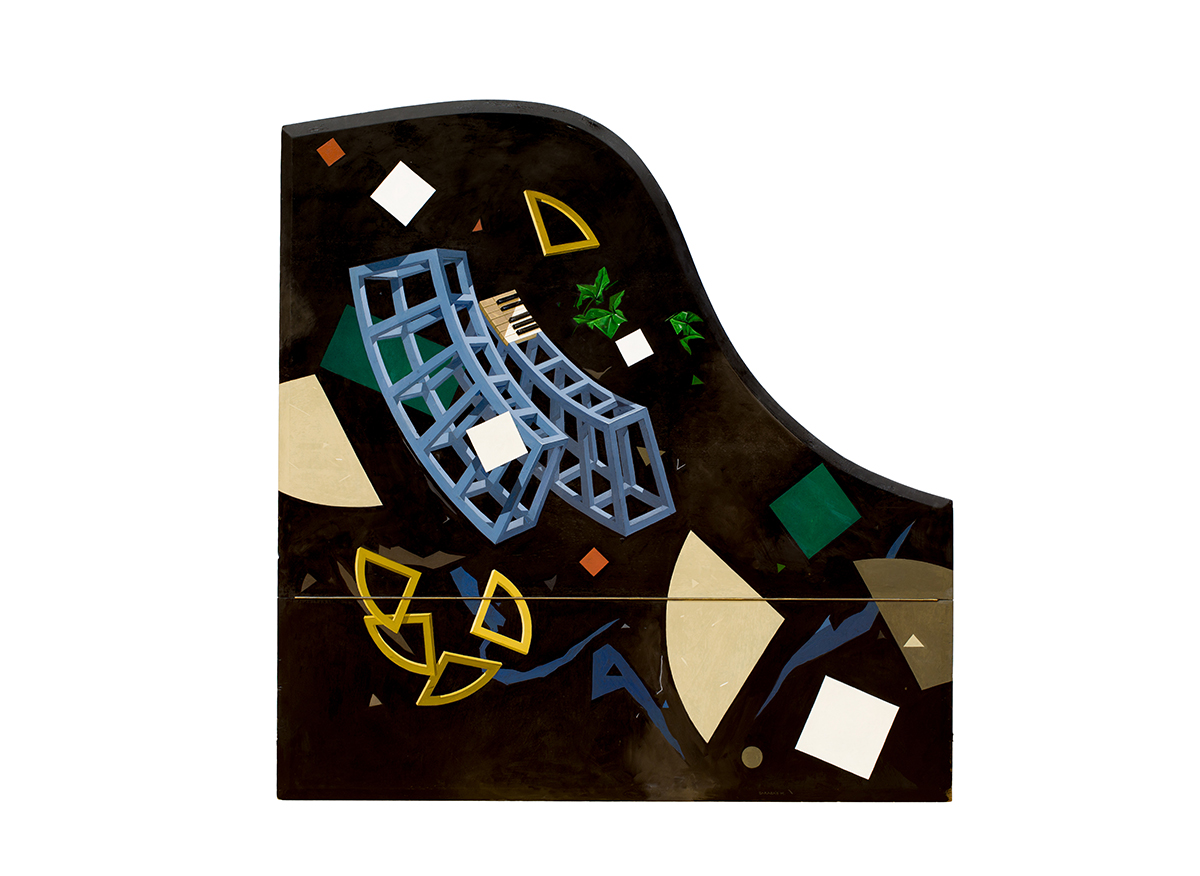 Hajszálvékony, ám erős zsinórokon lógó zongorafedeleken is hasonló történések mennek végbe. A rájuk „pingált” formák mellett, imitt-amott bonyolultabb szerkezetű testek is megjelennek (Kontrasztok [variáció] op 1233). Kivételes a Nadrágba bújt felhő (változat G. Gézának op. 23) című mű, ahol a fekete zongorafedél hasadékán át fénylő felhők bújnak elő különös térélményt nyújtva. A felhők alatti farmernadrág egyedi humorral ruházza fel a képet.