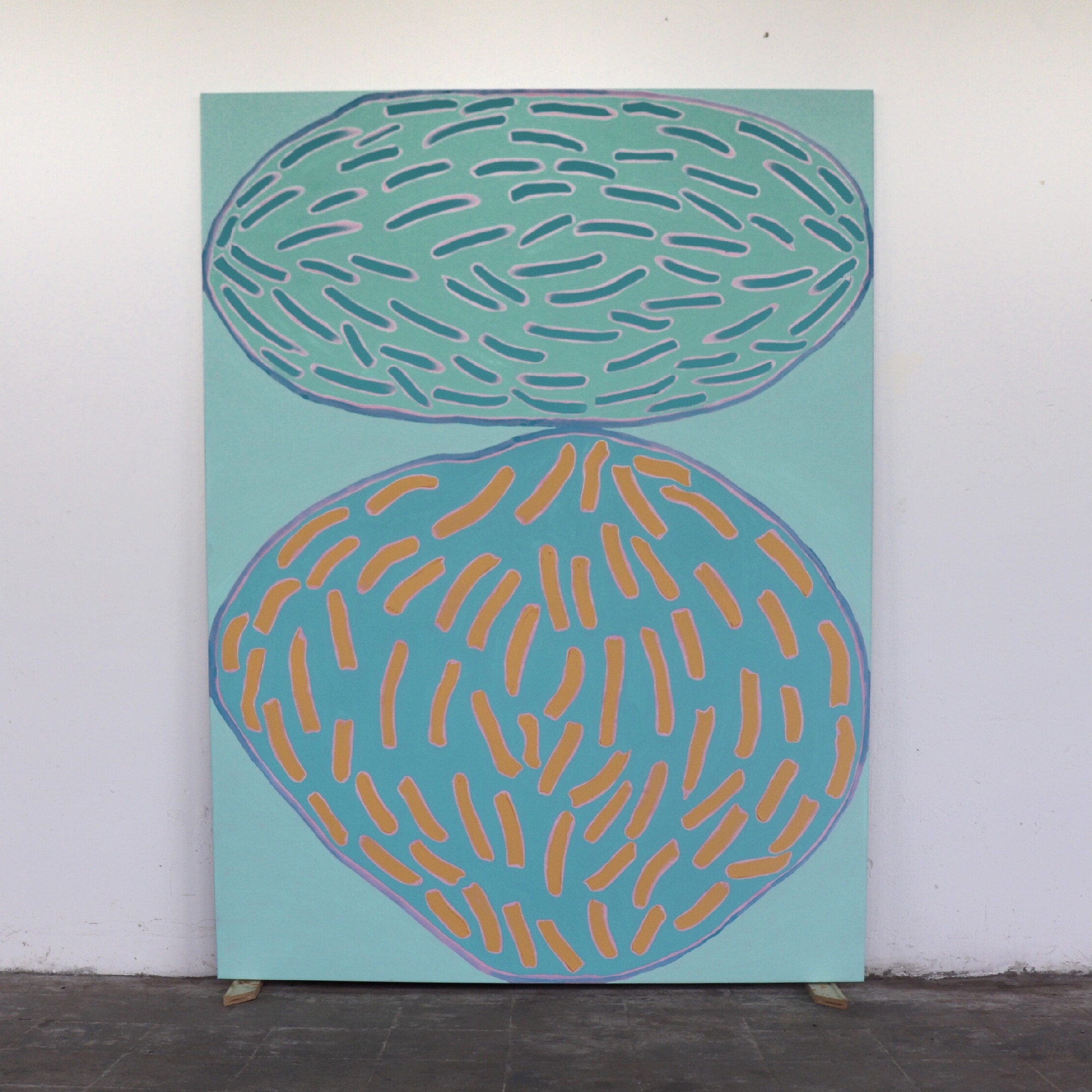 Bár legfrissebb művei impulzív, forró alkotások, amelyek szétfeszítik a teret, ugyanakkor minden kompozíción vannak olyan harmóniák, nyugvópontok, ahol megpihenhet a szem. A Radák Eszter-tanítvány a színekkel is eszerint játszik. A kontúrok harsány, neonos színekből épülnek fel, a középen futó vastagabb vonal és a széleken futó vékonyabbak árnyalatai gyakran egymásnak feszülnek, együttesen intenzív színérzetet adnak, a végeredmény pedig vibráló felület lesz, amely optikai játékot űz a befogadóval, intenzíven rezegteti a retináját, a kompozíció energiaszintjét az egekbe löki. Az intenzív, energikus, feszültséggel teli vonalak körül azonban mindig vannak olyan homogén színmezők, amelyek harmonikusak, lecsendesítettek. Olyanok, mint a szigetek, ahová el lehet vonulni, ha úgy érezzük, hogy túl sok zaj ömlik ránk a környezetünkből.
