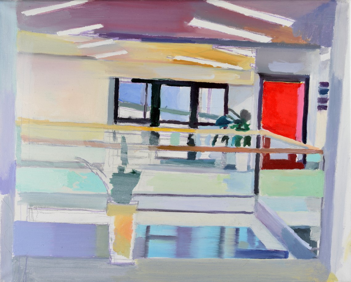 Ugyan az építészet és az épületek iránti vonzalmát ülteti át Merényi Dávid a vászonra, festményei azonban arra is alkalmasak, hogy mi magunk is rácsodálkozzunk, milyen esztétikusak azok a terek, ahol nap mint nap megfordulunk. Sokszor sietve végigszaladunk a lépcsőházakon, a telefonunkat bújva szállunk be a liftbe, oda sem tekintve nyitjuk a kapukat. A festő képei azonban ráébresztenek bennünket, hogy hétköznapjaink helyszínei is olyan szépségeket mutatnak, amelyeken érdemes rajta felejtenünk a tekintetünket. A postaládákon megcsillanó fény, a szigorú hasábként meredő liftakna, a szecessziós korlát vagy a míves kilincs mind olyanok, amelyek szinte észrevétlenekké válnak a mindennapok forgatagában.