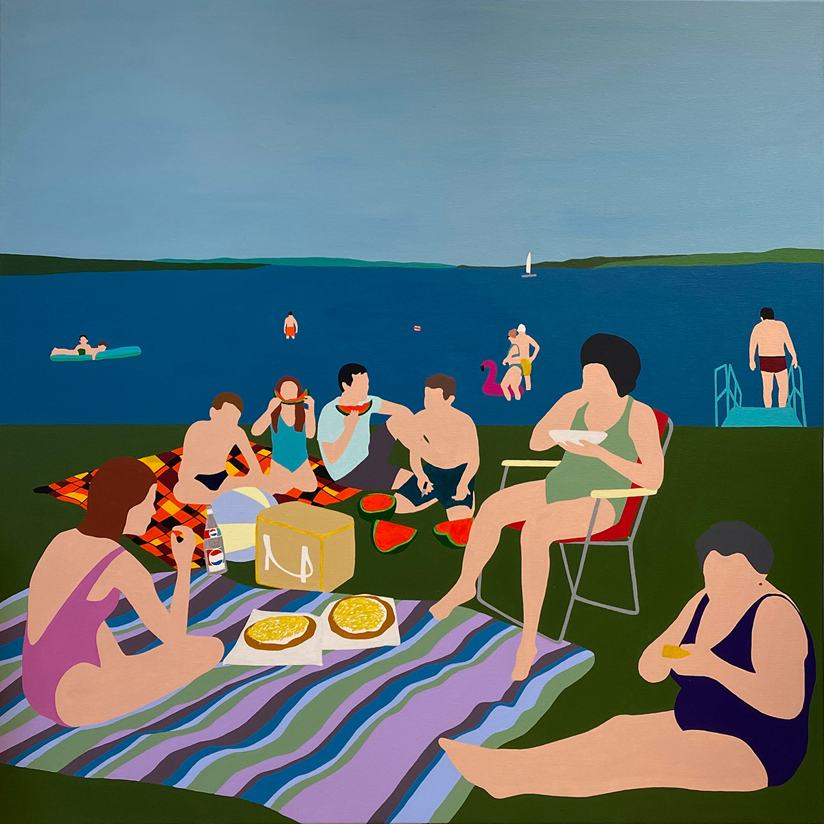 Új festményei tehát nemcsak kimerevítenek egy-egy kollektív emléket, hanem élővé teszik a megjelenített cselekvés történéseit. Ám ezek is olyan hétköznapi események, amik a legtöbb emberrel szintén megtörténnek, amikre ösztönösen hasonlóan reagálunk. Ha leesik a gombóc fagyink, ránk fröccsen a víz, vagy ha a gumipapucs pántja leszakad az aljáról, szinte ugyanazzal az átsuhanó dühhel és tehetetlenségérzéssel találkozunk, mint amit a képek sugallnak. Persze ezek nem nagy dolgok, és később már csak mosolygunk rajtuk. Ezért jó festményeken is megörökítve látni őket, mert bár azt a pillanatot látjuk, amely a bosszúságot okozza, mégis az utólag keletkezett könnyelműség mosolyát varázsolják az arcunkra.
