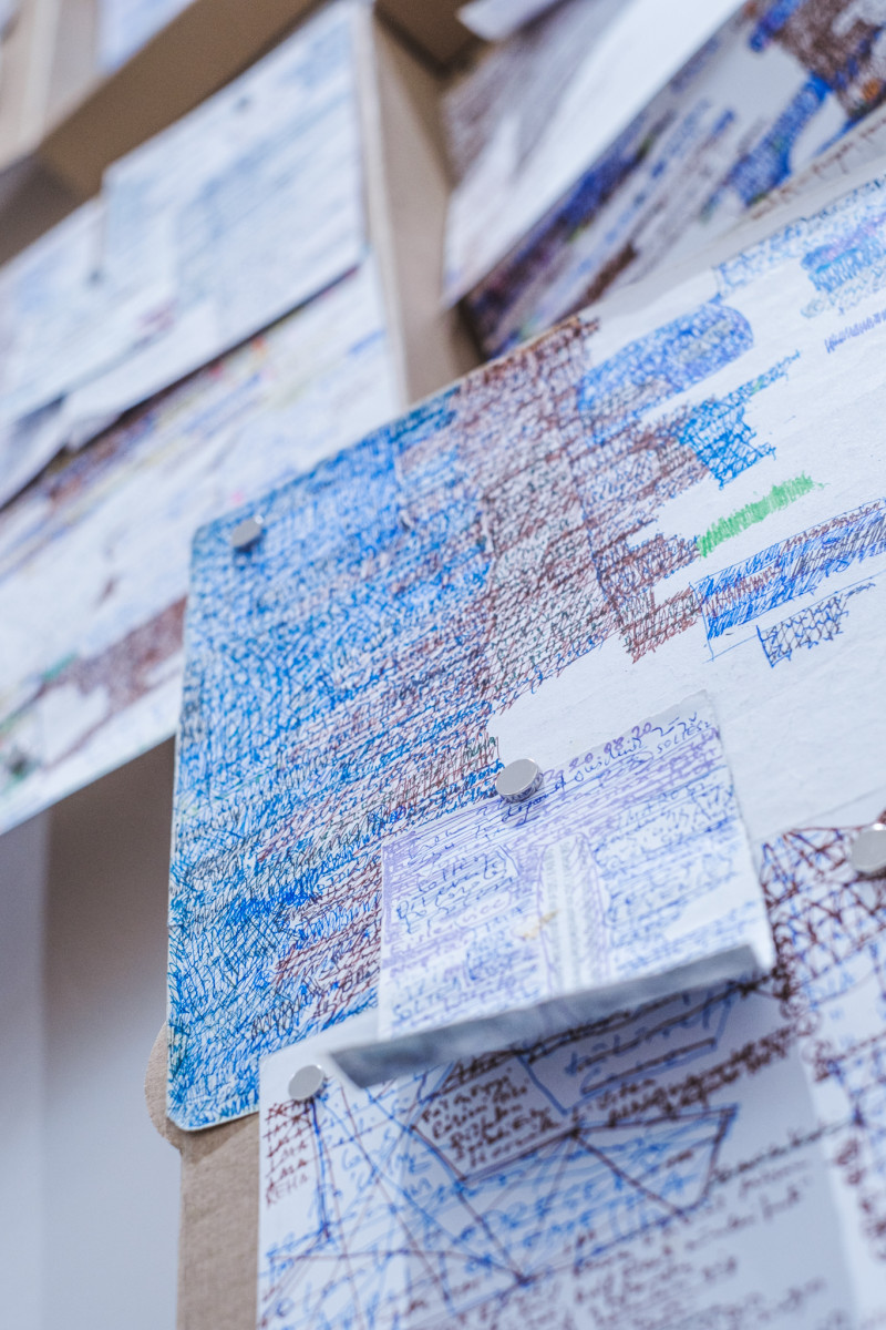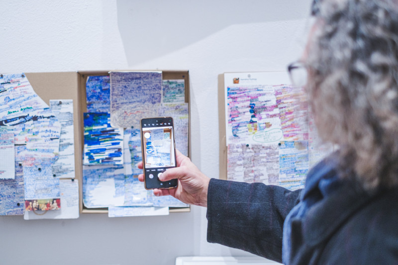 Tengernyi tennivalóinak céduláin a lényegre emlékeztető kulcsszavak mögött előadások, megnyitók, kutatások, tanulmányok, sőt, az életmű teljessége sejlik fel. Ez a bensőséges szál, illetve a két kurátor, Fehér Márta képzőművész és Százados László művészettörténész kiállításhoz írt szövege deklarálja a nyitott tárlat lehetőségét, ahogyan az a látogatók, a szakemberek és az ismerősök saját történetein, emlékein keresztül, a derridai értelemben „továbbírja önmagát”.