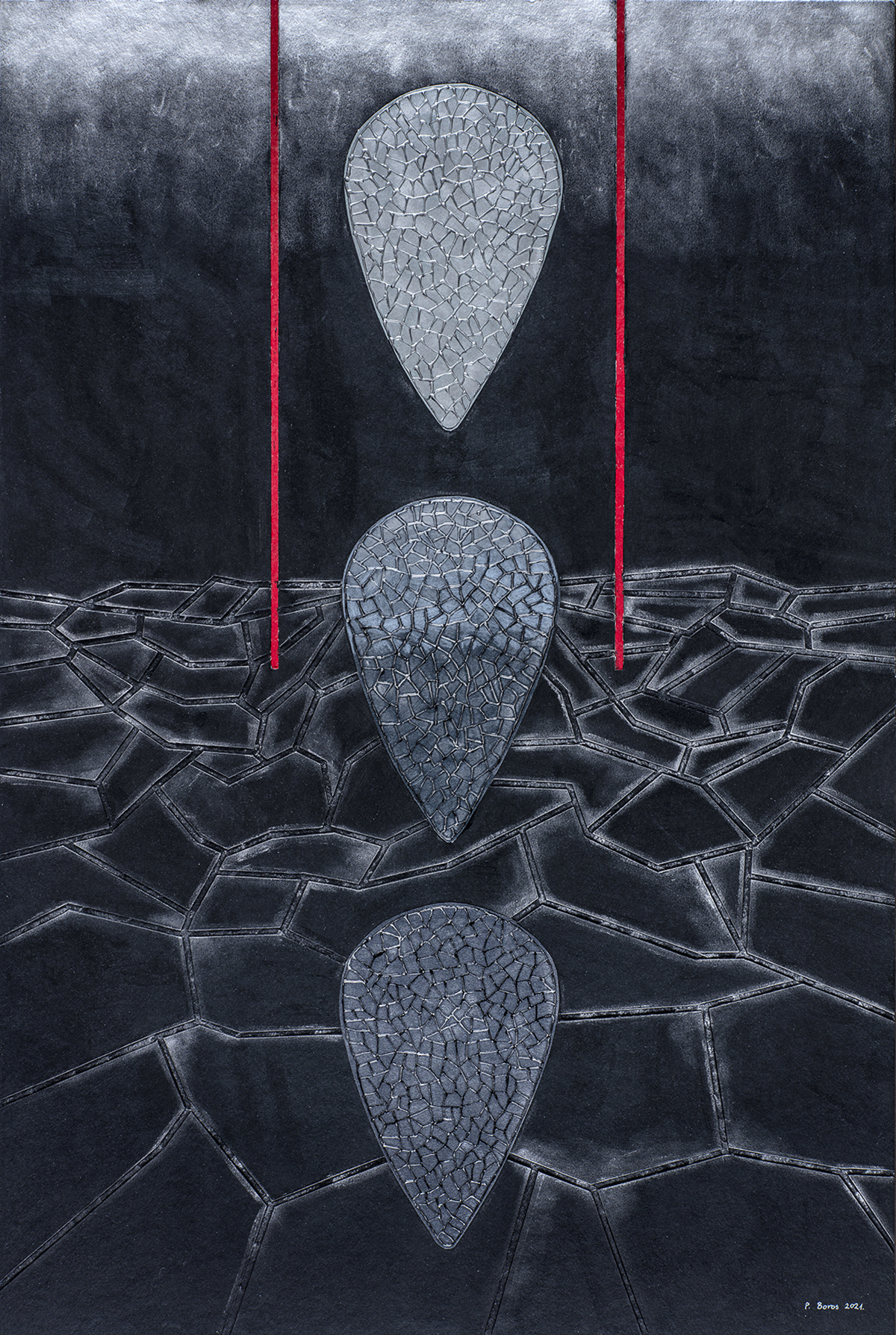 A bajai kiállítás három termében P. Boros az utóbbi évek munkáiból válogatva tárja fel mindazt a számára kulcsfontosságú kérdéskört és az ehhez vezető képi nyelvet, melyből a jövőben is meríthet.
