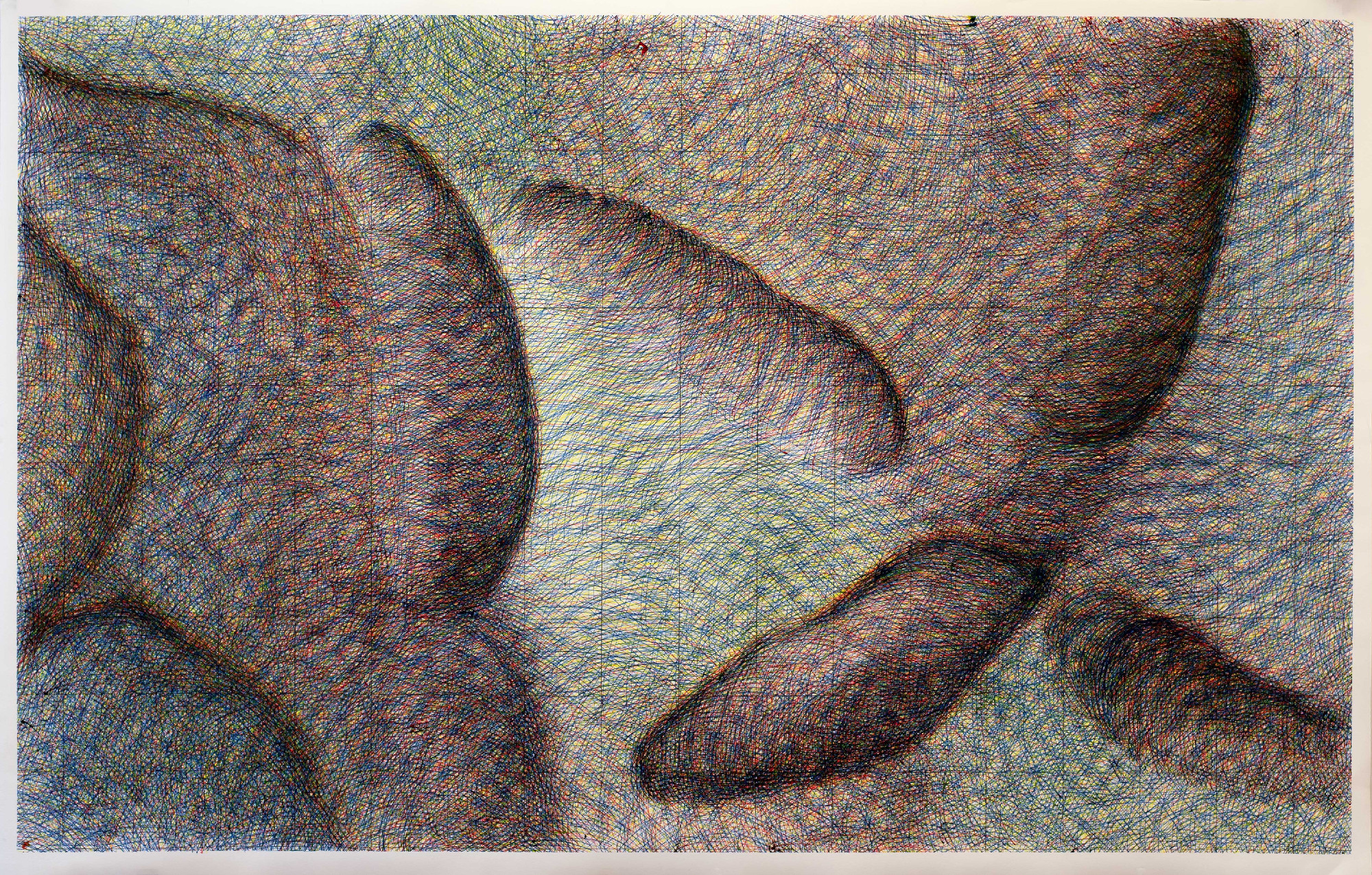 Sági Gyula legújabb sorozatain a művészet mezején többféle tudományos terepre vezet bennünket, hogy megmutassa, mi zajlik a láthatatlan dimenziókban. Az első terep a biológiára vitt: amőbák, egysejtűek, vírusok, baktériumok vagy gombák, láthatunk bármit ezeken az organikus absztrakt formanyelven formált képeken. Nincsen helyes vagy helytelen válasz. A testük bármelyik pontján találhatunk efféle képeket/jeleneteket, hogyha a megfelelő műszerekkel rendelkeznénk hozzá. Vagy egy nagy gépezetnek a legfontosabb része, aki leképezi a választ, az észlelet tárgyát. És azzal, hogy leképezi, meg is teremti a világot. Az alkotó mint egy rendkívül érzékeny műszer: mér és elemez, elsősorban pedig felszínre hoz és artikulál. Láthatóvá tesz a világunkat akár olyan elemi, alapszinten konstruáló elemeket, amelyek általánosan kívül esnek a világban-létünket meghatározó elsődleges észlelésen.
