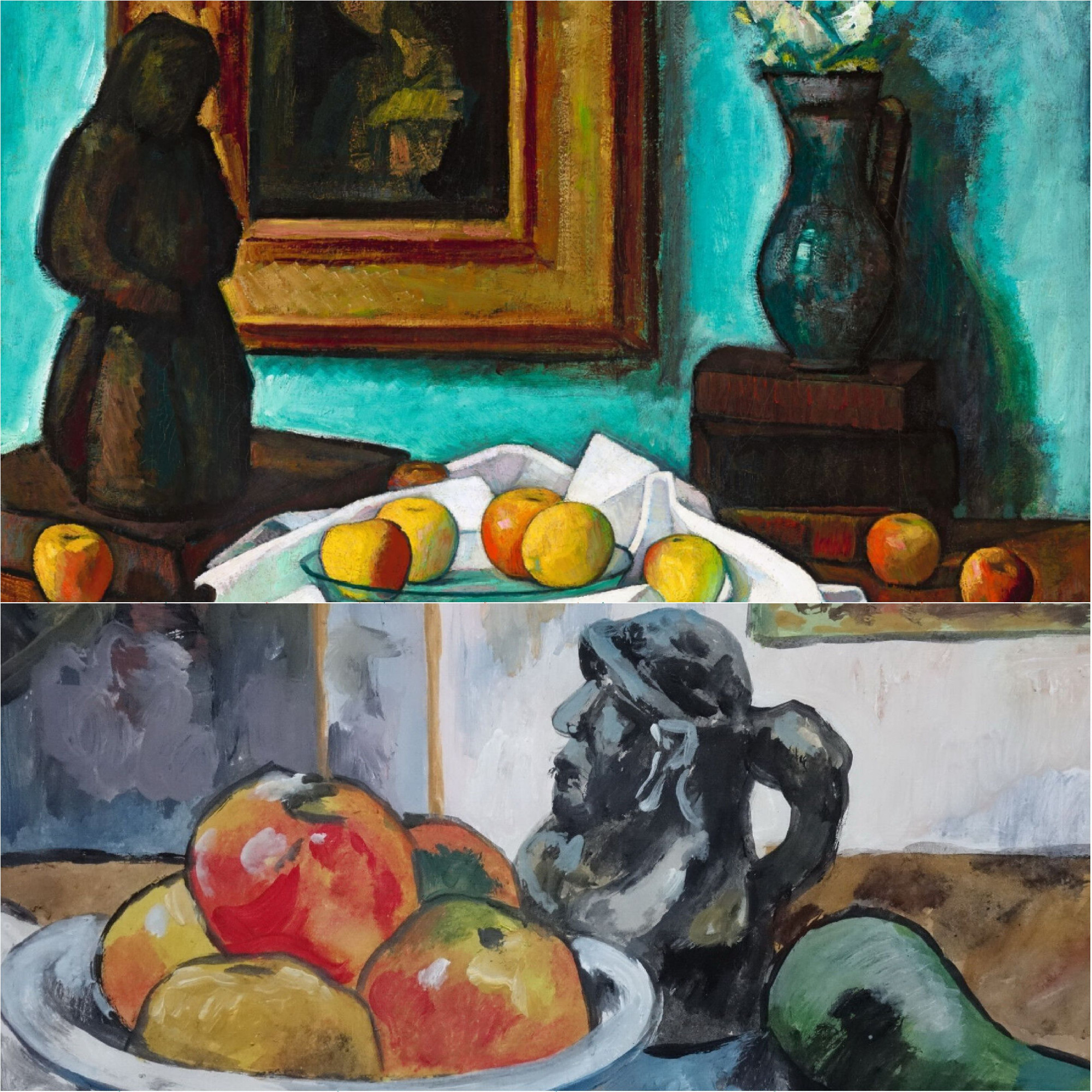 Lent: Paul Gauguin: Csendélet-tanulmány almákkal és kancsós önarckép kerámiával