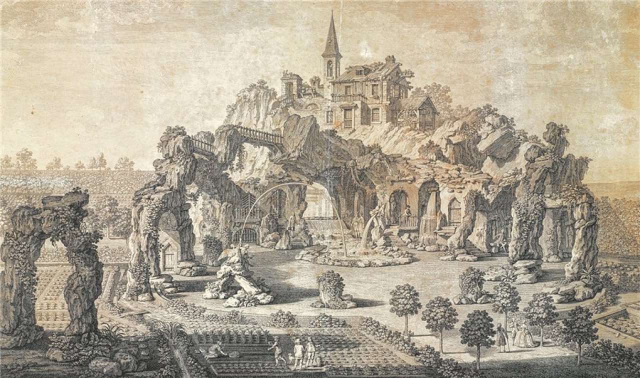 A szereplőket övező háttér – e kiterjedt barlangrendszer – viszont elképesztően eredeti, és valószínűleg a képzelet szüleménye, amit valós geológiai formák, illetve az ekkortájt már egyre népszerűbb mesterséges barlangszentélyek, az úgynevezett „grották” inspiráltak. A grották igazi virágkorukat később, a XVII–XVIII. században élték, mint a különféle szabadkőműves rendek legfőbb beavatási szentélyei. A szabadkőművesek okkult tudása részben az ókori Egyiptomból eredt. Úgy képzelték, hogy rejtett szentélyek lapulnak a piramisok mélyén, amelyeket folyosók kötnek össze. Ezeket a földalatti barlangszentélyeket és kavernákat modellezték a szabadkőművesek által épített mesterséges grották, melyekben obeliszkeket és Ízisz-szobrokat helyeztek el. Csakhogy mivel a valóságban ilyen egyiptomi piramisszentélyek nem léteztek, ki kellett találni őket. Itt jött a képbe a reneszánsz kertépítészet és főként a Sziklás Madonnán látható geológiai szentély, tehát Leonardo. A szabadkőművesek vélhetőleg Leonardo eme közismert művéből vonták le a grottaépítés általános szabályait, amelyek röviden az alábbiak voltak: