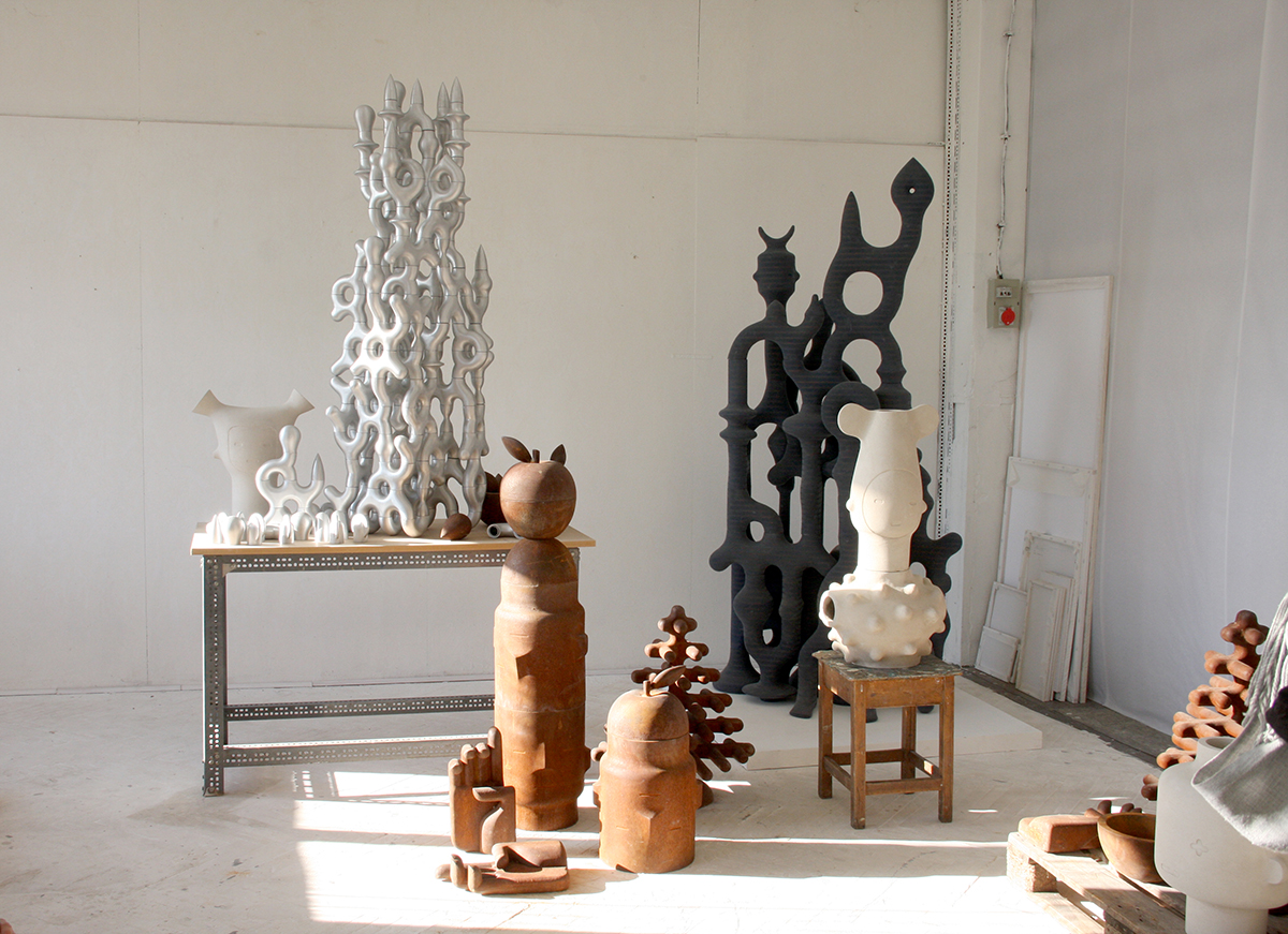 A modulárisan építkező szobrok azonban sosem tudatos, hanem mindig intuitív komponálási folyamat eredményei: az előre kiöntött elemeket aszerint állítja össze, hogy éppen milyen atmoszférát szeretne elérni. A helyzettől és a tér karakterétől függ, hogy a lehetséges utak közül épp melyiket választom. Mivel az adott mű egyedi karakterű modulokból épül fel, ezért a szobroknak nincs végleges, fix állapotuk, akár minden egyes installálás során újabb kompozíció állítható belőlük össze. Ugyan a variációk száma végtelen – teszi hozzá a szobrász –, a különböző struktúrák azonban eltérő érzeteket adnak, talán ezért sem megkerülhető az alkotó jelenléte a komponálás során.