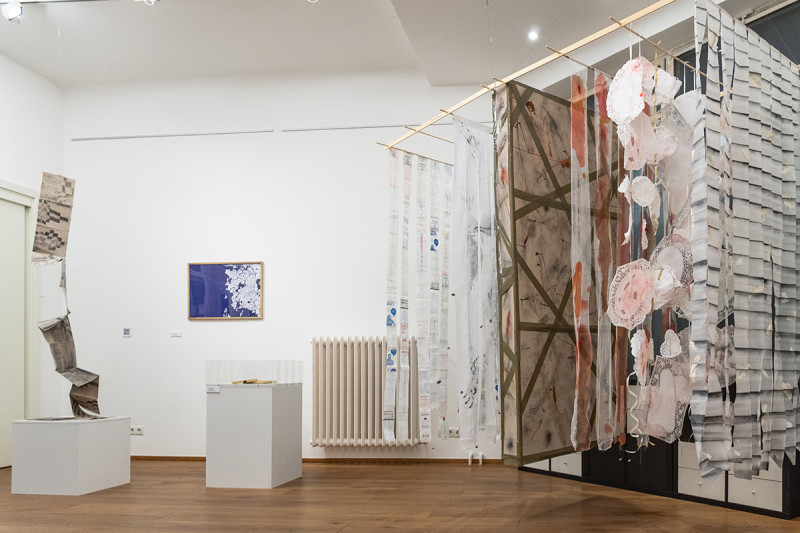 Többen dolgoztak merített papírral, vagy hasonló anyagkísérletekkel is.Bokor Dorottya lapokból álló installációja korábbi munkáinak megsemmisítéséből készült. Egyfajta metamorfózist látunk, ugyanis az Epoch című művében visszhangzik megannyi korábbi kísérlet, vázlat vagy akár kiforrott munka, amely eredeti formájában már érvényét vesztette. Darabjaikat újradolgozva azonban önálló alkotás született.