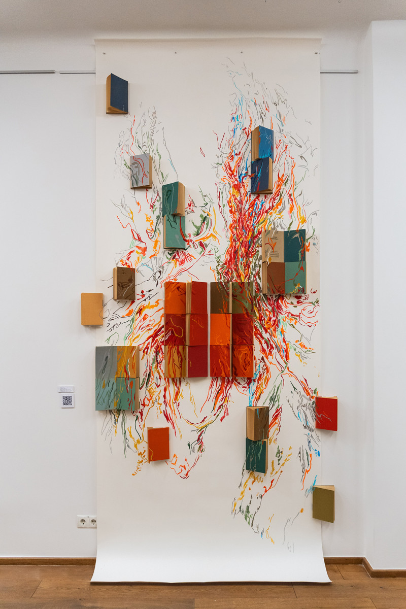 A központi tematika testen keresztüli értelmezését Matyus Dóra installációjában is megfigyelhetjük. Ő a magánszféra tiszteletét a mentális egészség feltételének tartja. Az intim tér megtapasztalása mozgáson keresztül is érzékelhető: ez a hely, amelyet folyton megközelítünk, vagy elhagyunk. A mozgásmeditáció alapú alkotás a befelé tekintéstől a fizikai határokon át az egymás közötti kapcsolatokig vezet, egészen a nagy egész és az önmagán túlmutató részek megfigyeléséig. A könyvlapok között egy szabad vers is kiolvasható, melynek befogadásához a nézőnek is mozognia kell a mű előtt.