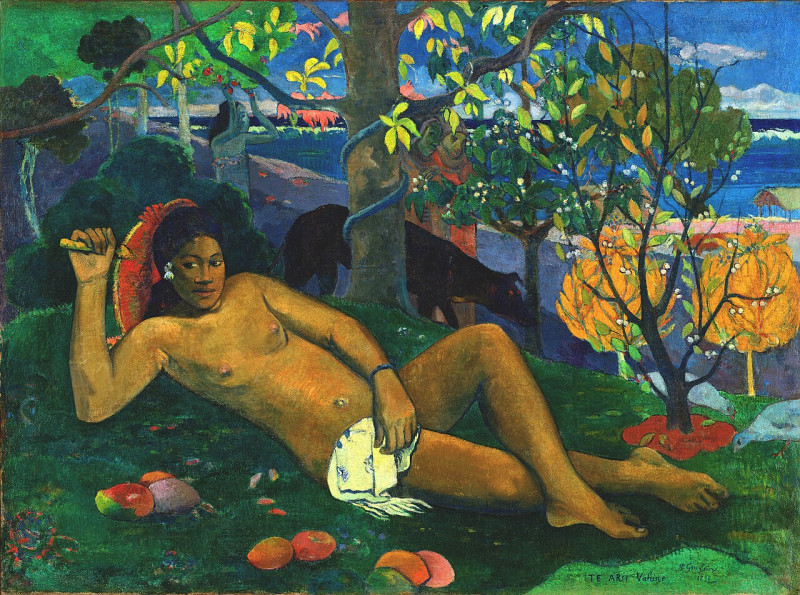 Gauguin festészetének szerves részét képezte a művészi parafrázis, különféle korok és kultúrák szintézise, spirituális kommunikáció a halott festőelődök szellemével, olyannyira, hogy sokan gátlástalan plagizátornak tekintették, noha Vergilius már évezredekkel (!) korábban tökélyre fejlesztette a művészi parafrázist. Tahitire sem üres kézzel érkezett: sokat próbált útibőröndjében számos fekete-fehér dagerrotípia lapult: Nyugat és Kelet képzőművészete. Köztük Manet Olympiája és előképei: Goya, Tiziano és Giorgione. Hiszen e fekvő női aktok Giorgione óta rendszeresen újjászülettek a festészetben, ahogyan Vénusz (Aphrodité) is képes volt bármikor újra kiemelkedni a tenger habjaiból és buja természete dacára újból és újból szűzzé válni, egyedüliként (!) az istenek között.