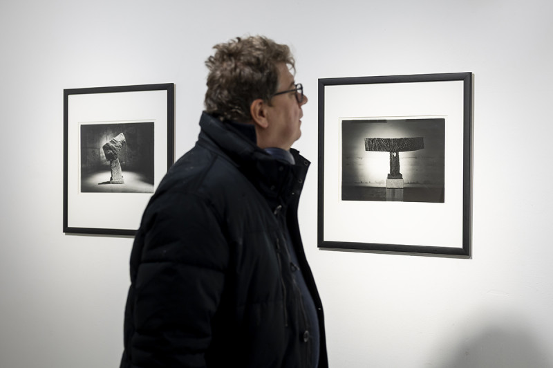 A nagyméretű fotók térben való elhelyezése, azaz a szobor „körbejárhatóságának” visszaadása még egy Joseph Kosuth-féle konceptuális játékot is becsempész a kiállításba. A negatívba fordítás gesztusa megfosztja a képen szereplő szobrot annak eredeti terétől, s helyét az aktuális kiállítótér veszi át. A szobor tárgyi mivolta felerősödik, időbelisége azonban eltolódik a múltból az adott pillanatba, hiszen kizárólag efemer módon, a jelen idejű befogadásban válik értelmezhetővé.