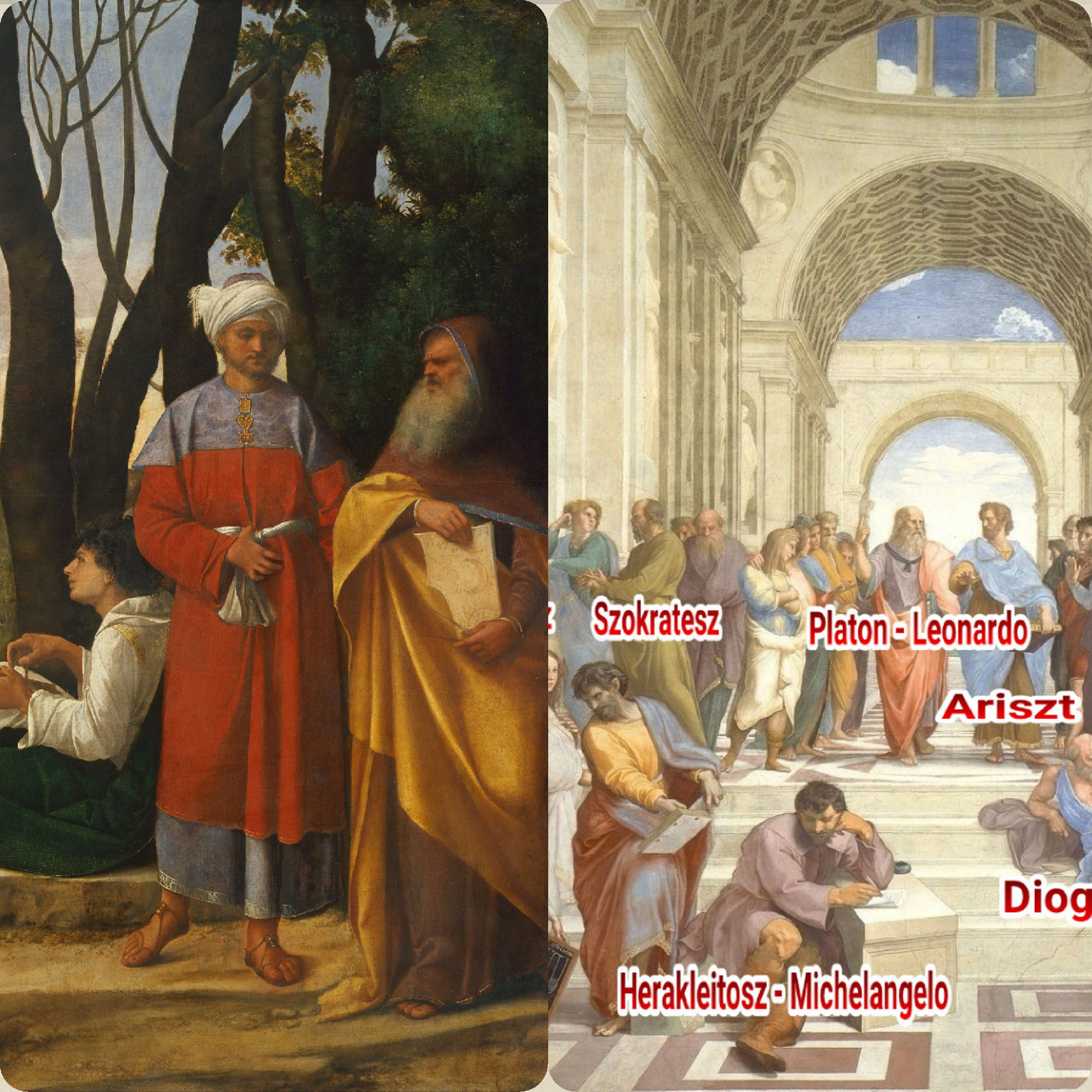 Giorgione életéről szinte semmit sem tudunk – noha kiváló társasági ember hírében állt –, művei pedig végképp homályos, enigmatikus alkotások, melyeknek rendszerint az utókor adott címet, s melyeknek sokszor a szerzősége is vitatható. Jelen vászon esetén sincs ez másként. Évszázadokon át úgy emlegették, mint a Három napkeleti bölcset, ám többeknek szemet szúrt, hogy a képen semmilyen attribútum nem utal Betlehemre, és nem látjuk a jellegzetes aranytárgyakat sem, így napjainkban leginkább úgy emlegetik, mint a Három filozófust. Ennek értelmében az idős filozófus jelképezné a klasszikus görög filozófiát, a turbános „napkeleti bölcs” a hellenizmust, a fiatal tudós a szögmérővel pedig a „modern” reneszánsz tudóst. Ezen elmélet Achilles-sarka, hogy a „három filozófus” nem illeszkedik semmilyen mitológia vagy egyéb kontextusba, illetve az, hogy szélsőségesen leegyszerűsíti Giorgione alapvetően polifón, enigmatikus és szuggesztív művészetét. Giorgione képe egyébként kiállja mindkét próbát. Az idős mágus (vagy filozófus) köpenyében rejtegetett tekercsén csillagászati ábrákat látunk. Bár az evangéliumok alig említik a betlehemi Háromkirályokat, Máté evangéliumából annyit biztosan tudunk, hogy Jézus születésekor napkeleti bölcsek egy csillagot követve indultak Betlehembe, hogy megajándékozzák a Világkirályt. Ez egyike a Biblia azon eseményeinek, amely tudományosan is bizonyított: Jézus születésekor valóban különleges bolygókonstelláció volt a Halak csillagképben. Giorgione vászna szuggesztiókat lop belénk, ami ugyanúgy lehet a Mágusok Utazása is Betlehembe, mint három nagytudású filozófus – és három különféle korszak – tudományos eszmecseréje a természetben. Érdemes azonban összevetni Giorgione tudósait Raffaello „valódi” tudósaival az Athéni Iskolából. Raffaello freskóján szigorú hierarchia uralkodik, melynek csúcsán – azaz gravitációs középpontjában – Arisztotelész és Platón állnak. (Magát a „metafizika” kifejezést is Arisztotelész alkotta a fizikai világon túli jelenségekre). Mind az összes többi tudós e körül az „ikercsillag” körül kering, úgy egymásba csimpaszkodva – „teammunkában” –, miként a molekulák. Giorgione bölcsei közt ezzel szemben az interakció minimális. A fiatal filozófus alakja teljesen elszigetelt, az idős mágus pedig mintha kelletlenül vagy bizalmatlanul venné elő pergamenjét. Másrészt: Raffaello freskóján minden az emberi szellem diadalát zengi, nyoma sincs rajta természetnek, míg Giorgione képén alapvetően a természet uralkodik egy hatalmas barlang formájában, amely sötétsége folytán szívó hatást fejt ki a szemlélőre. Giorgione mágusai tehát még nem léptek be Betlehembe, de már eljutottak a Természet Templomának végtelen titkokat rejtő kapujába.