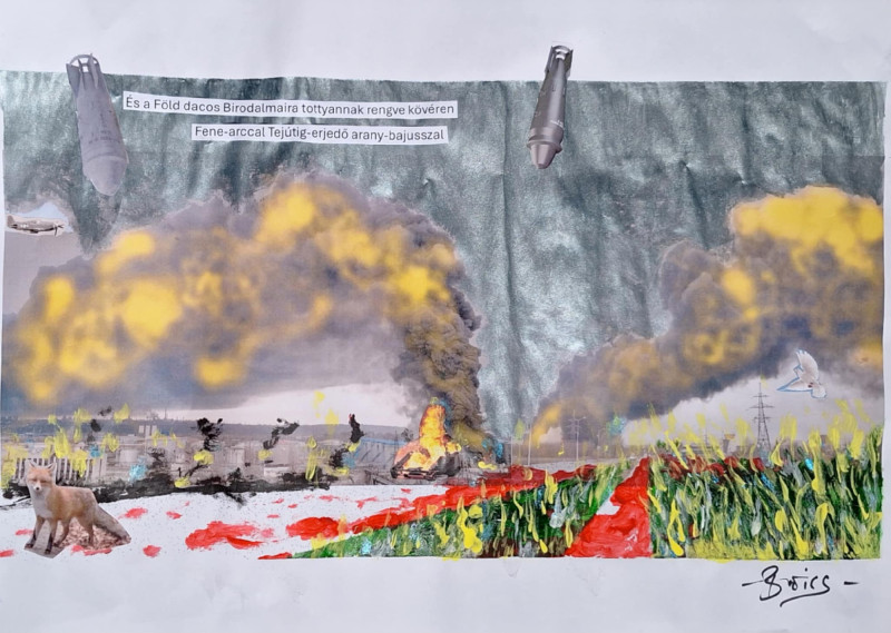 Az elmúlt évtizedekben számos atomháborús művet készítettél, melyek ismét aktuálissá váltak. Készítettél ilyen kollázst Alan Ginsberg számára is, jelenleg pedig különleges Juhász Ferenc-kiállításra készülsz, ami szintén az atomháború víziójához kapcsolódik.
