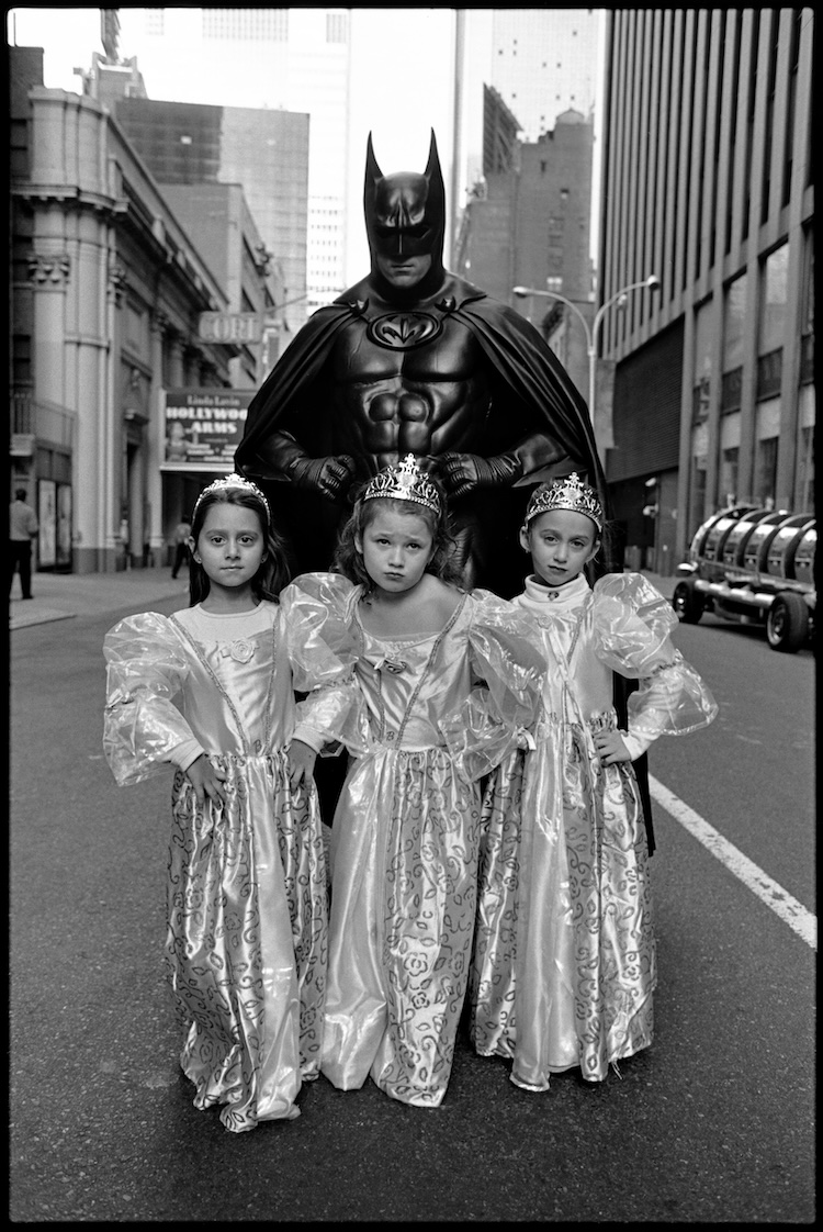 © Mary Ellen Mark: Batman és a kis Barbie-k, Toys R Us ünnepi felvonulás, USA, 2002