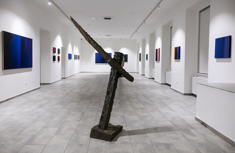 Az első fekete festmények és grafikák 2010 környékén bukkantak fel, a művész személyes és társadalmi szempontból is nehéz időszakában: a változó politikai közérzet, a szorongás, a fenyegetettség és a be nem illeszkedés tapasztalata ekkor nyert képi formát. A 2015 körüli grafikák dinamikus „zuhanásképei” ennek az állapotnak vizuális lenyomataiként is értelmezhetők; előképként ezen a kiállításon is megjelennek. Több mint egy évtized elteltével azonban nyugodtabb, határozottabb esztétikai és belső világ áll szemben velünk. Olyan világ, amely szembenéz a kozmológiai jelentésrétegekkel, a haláltudattal, az univerzum fenséges mélységeivel, a világ eltűnésének gondolatával, és ennek nyomán a feketét nem a mindent elnyelő űrként vagy semmiként értelmezi, hanem olyan térként, amelyben az ismeretlennel szembeni, szorongással vegyes csodálkozás válik meghatározóvá.